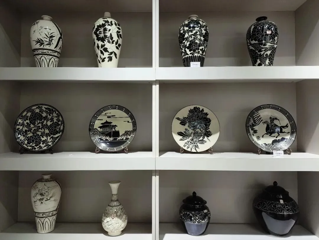 下一站是磁州窑艺术馆,展出历代磁州窑精品,白地黑花、剔刻花、铁锈花、红绿彩瓷,涵盖瓶、枕、罐、盘等;可对比不同朝代釉色与纹饰变化。安际衡先生是磁州窑烧制技艺国家级非遗传承人、中国陶瓷艺术大师、磁州窑艺术馆馆长,也是将磁州窑从传统工艺推向当代艺术与市场的核心人物。他完整恢复磁州窑手工拉坯、手工绘画、手工雕刻等传统工序,熟练掌握并推广白地黑花(铁锈花)、白釉剔刻划花、黑釉刻划、红绿彩、珍珠地等核心技法。