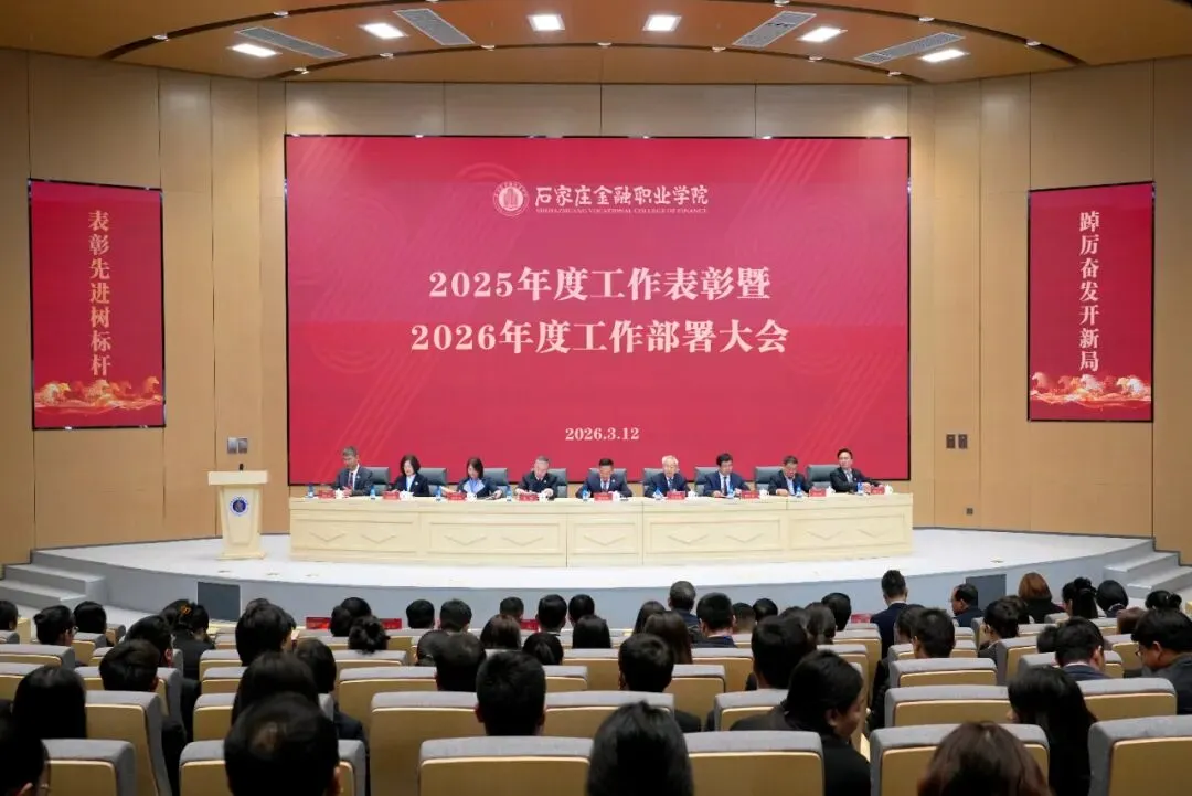 3月12日上午,石家庄金融职业学院2025年度工作表彰暨2026年度工作部署大会在学校金石大讲堂隆重召开。董事长施国连出席并讲话,执行校长张晓辉、党委书记董慧分别对2026年度重点工作、党建工作进行安排部署。大会对2025年度考核评选的25名优秀员工进行了隆重表彰,学校与各部门、各单位签订了《2026年度重点工作目标责任书》。会议由常务副校长韩自清主持。