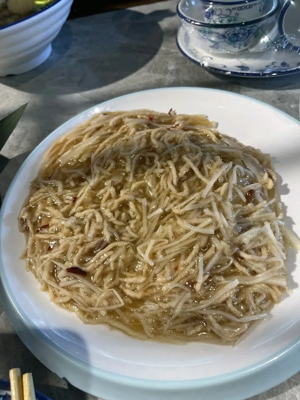 素颜版鱼香肉丝,和常规的鱼香肉丝不太一样,保定限定版哈哈,不放胡萝卜和木耳,纯肉丝~吃起来不错