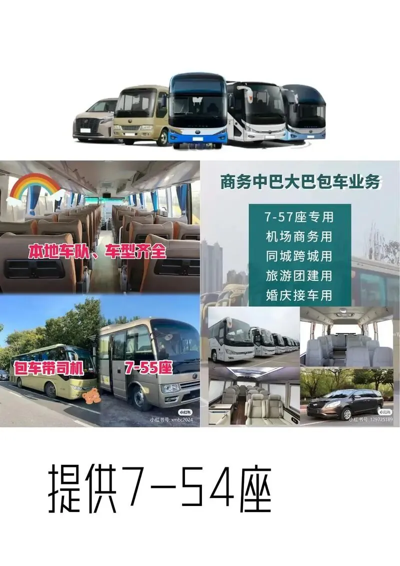 我们是全国大巴车包车租赁服务公司,咱们在全国这块做了很多年了,我们各种车型都有。5座的、7座的、9座的,15座的,19座的,30多座的,50多座的大巴车,我们车型应有尽有。有什么需要你打我们的电话?我们的司机都是本地的司机。有最少8年驾龄起步的,也对本地非常熟悉。从小在咱们这儿长大,有什么想吃的、想喝的、想玩的,不明白的。可以跟我们司机沟通,司机带你们过去。有什么需要打电话或加微信
