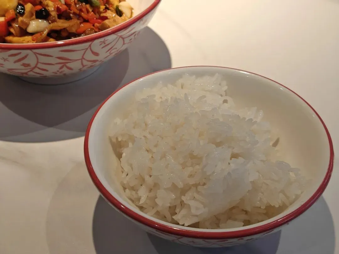 这家店的白水应该是自来水烧的,但这米饭确实不错。