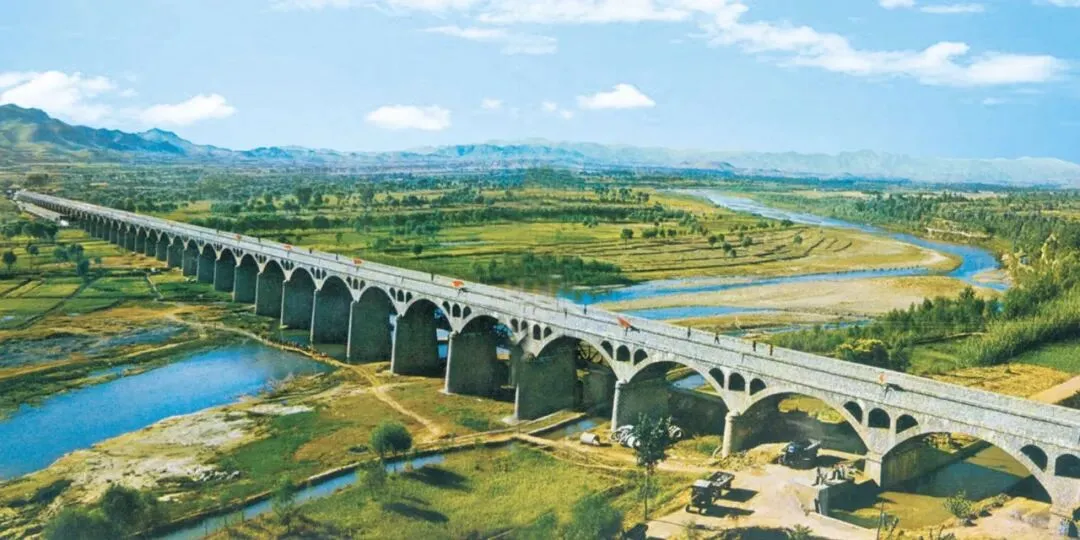 冶河渡槽,是她的标志性工程,长1170米,高26.3米,宽6.5米,过水流量每秒13立方米,整个渡槽完全是靠人工用大块料石垒砌而成,干渠长102公里。