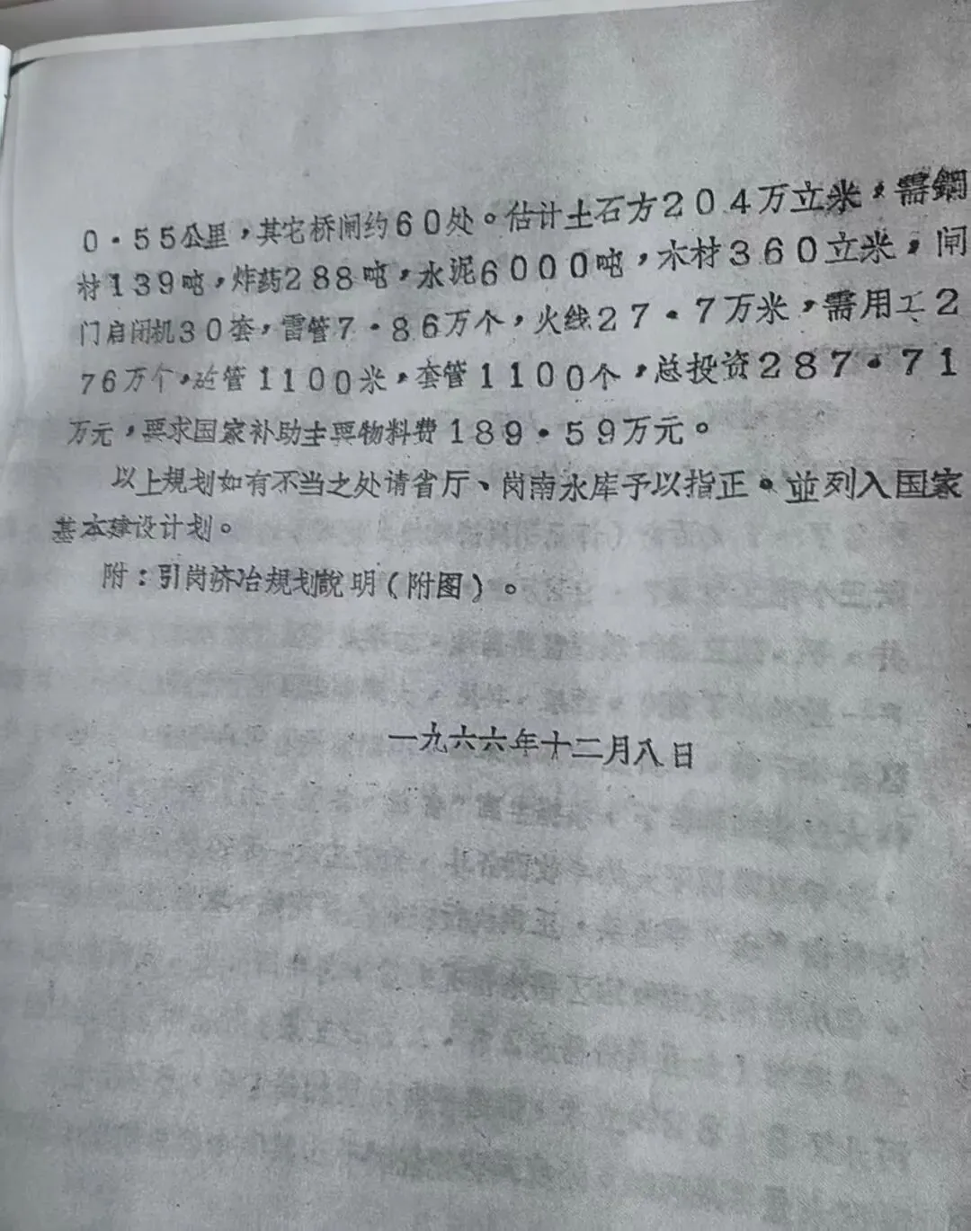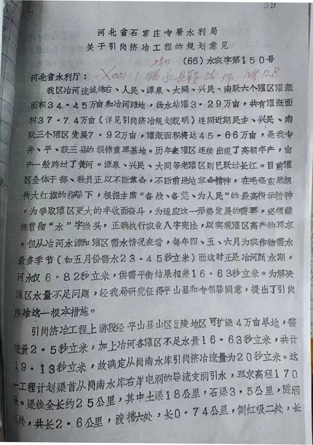 图9.2、1966年12月8日,石家庄专署水利局,向河北省水利厅报告,关于引岗济冶工程的规划意见,第2页。