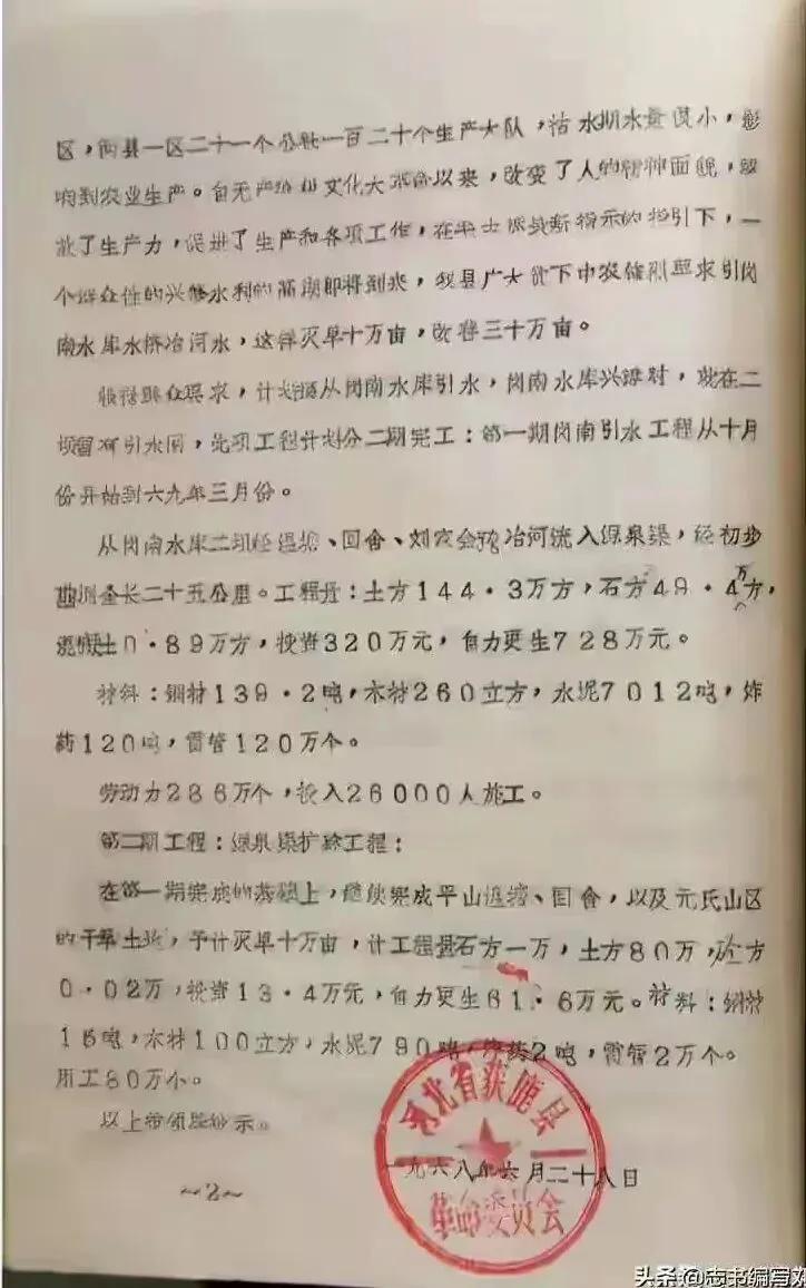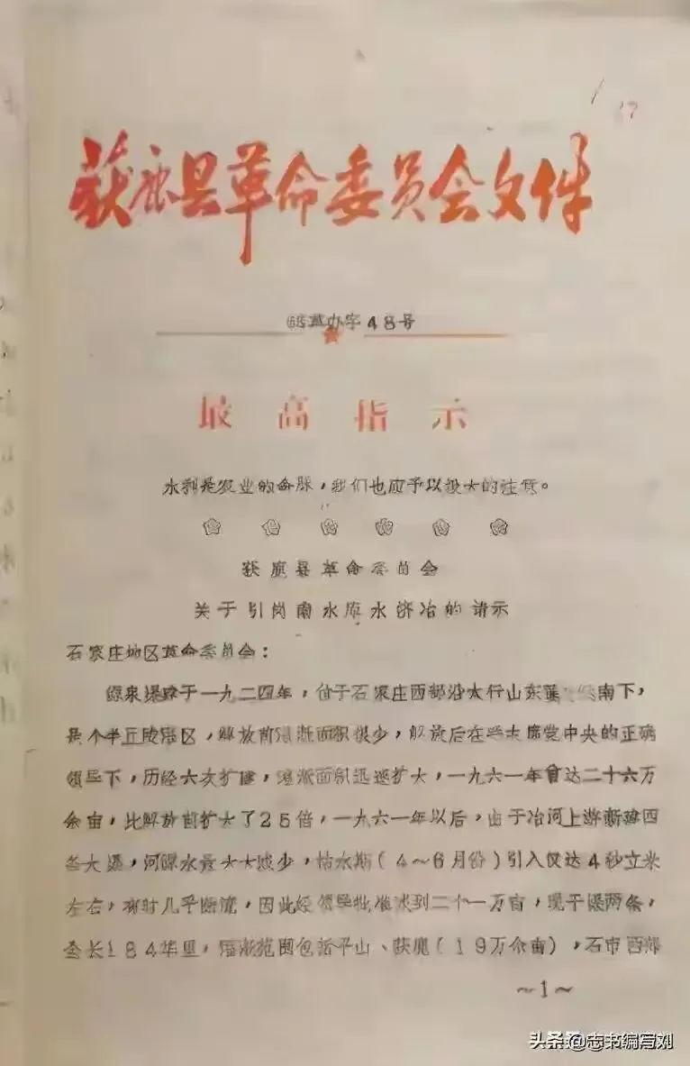 三、这项工程是彻底解决获鹿用水问题的工程,而且是五年一气完成,是那个年代石家庄区域规模最大的水利工程。它是几十年来鹿泉人的民心,是一个很干净的工程,一提起此事,大家就赞不绝口,心潮澎湃,激动不已,是教育后代,不忘初心,牢记使命,开创未来,实现共同幸福,最好的教材。
