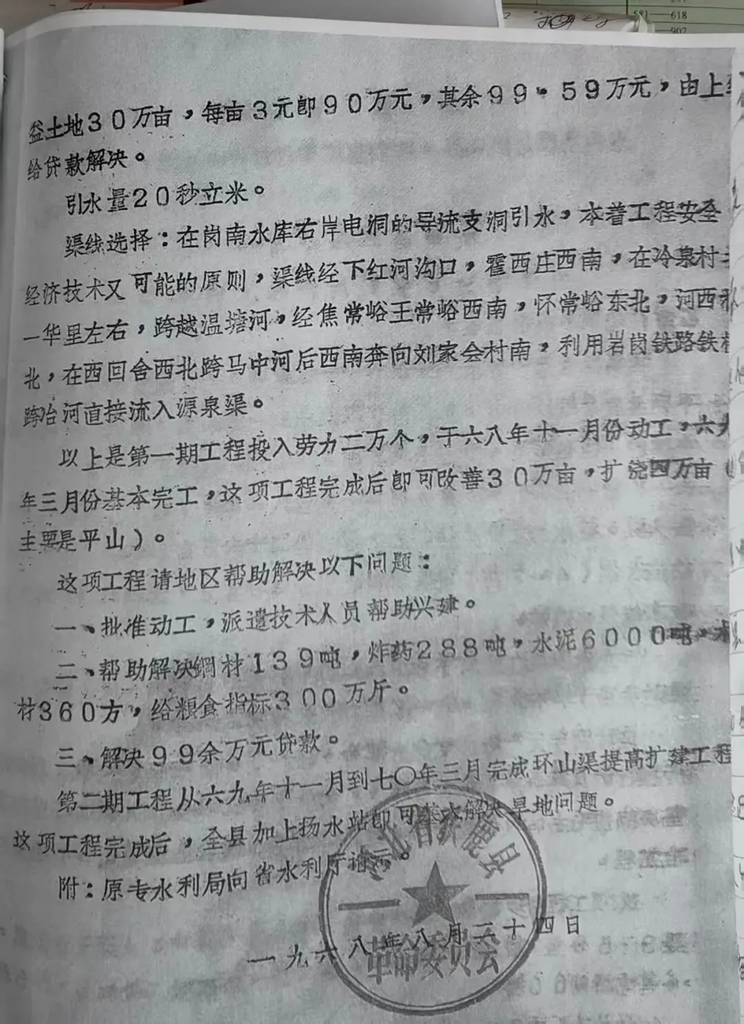 1966年至1968年,石家庄专署水利局根据获鹿县提供的情况做出规划,向省水利厅请示报告,向上级申请、获鹿县革命委员会。