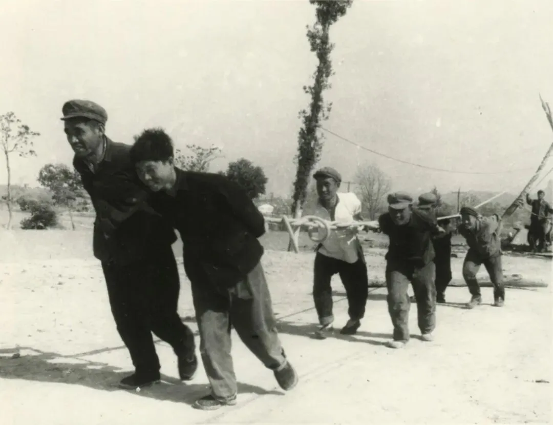 图12、霍北庄隧洞民工,正在人工拉麻绳向外运出石渣
