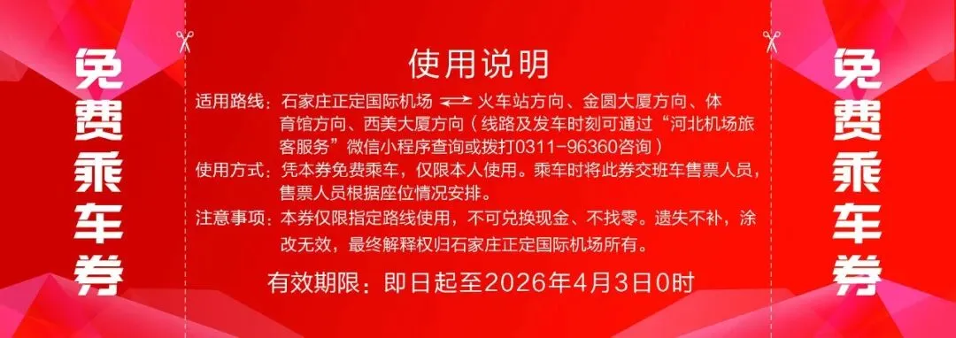 更多航班时刻、服务信息可通过“石家庄正定国际机场”微信公众号和“河北机场旅客服务”微信小程序进行了解。