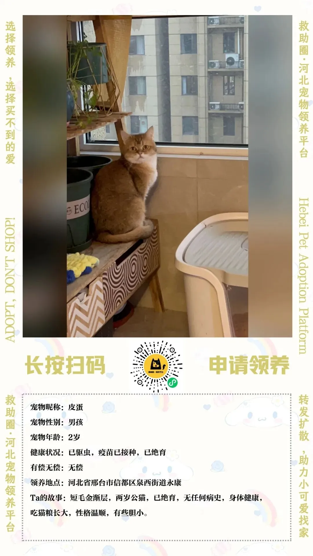 *注:以下领养须知为平台意见仅供参考,具体领养要求依据送养人而定。