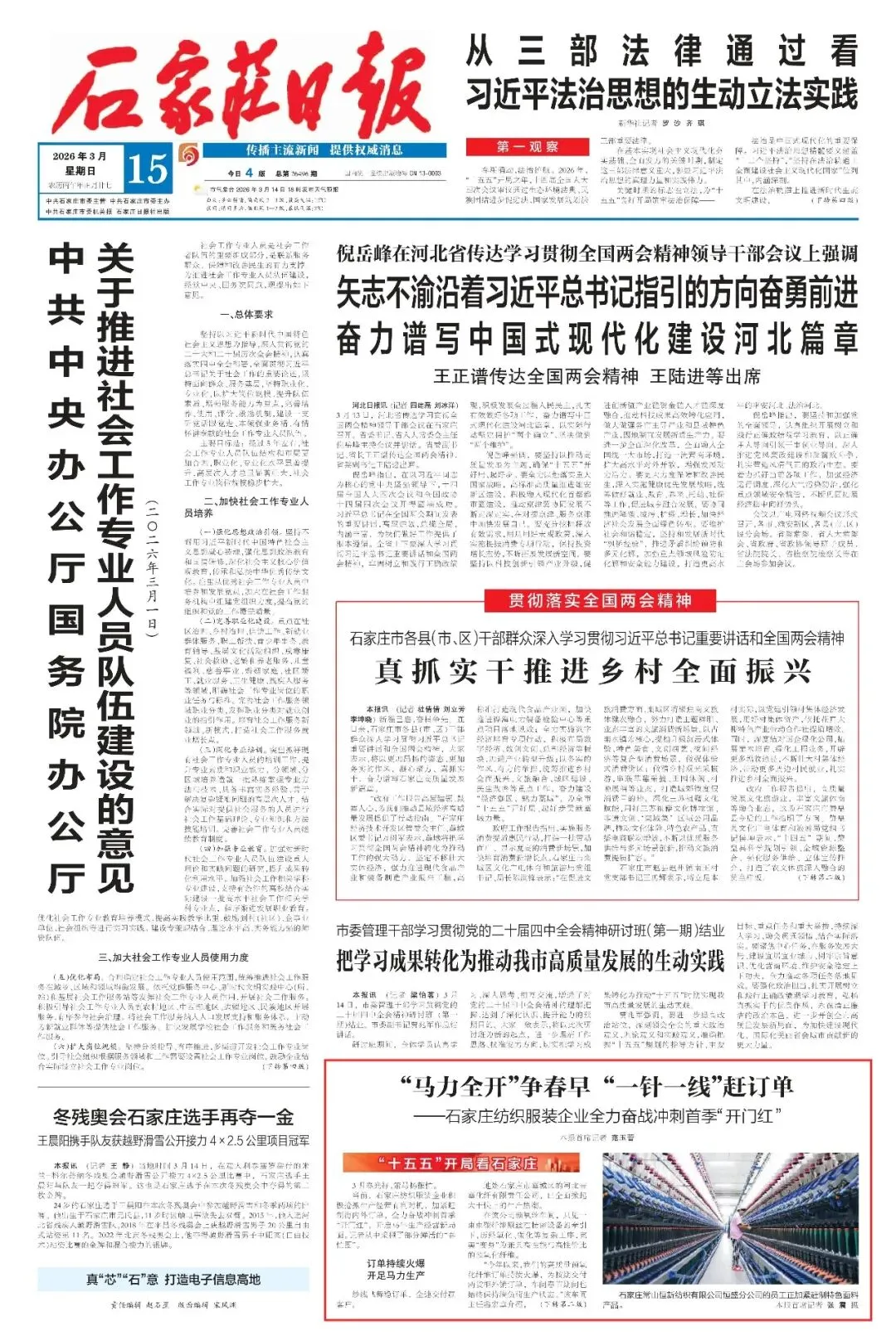 “实现首季‘开门红’对完成全年目标任务至关重要,希望全市纺织服装企业继续‘马力’十足地向前冲,以实实在在的业绩开好局、起好步。”石家庄市纺织行业协会相关负责人表示,行业协会将一如既往地支持企业发展,并积极发挥桥梁纽带作用,组织会员单位参加美国河北商会采购订单发布会、2026年东方国际集团工贸对接会、2026中国纺联春季联展等一系列行业展会,帮助企业推介“石家庄造”纺织服装产品,助力企业拓展海内外市场,在推动石家庄纺织工业高质量发展的大道上奋蹄争先,跑出“精彩”。