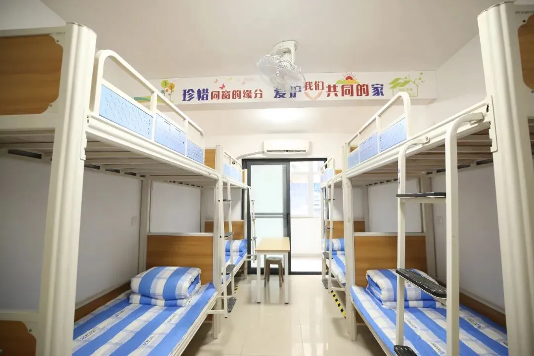 公寓式宿舍,配备空调、洗衣机、独立卫生间、淋浴间,班主任每天查房,班级三集合,全天候贴心守护在学生身边!让学生住的舒适又安心!