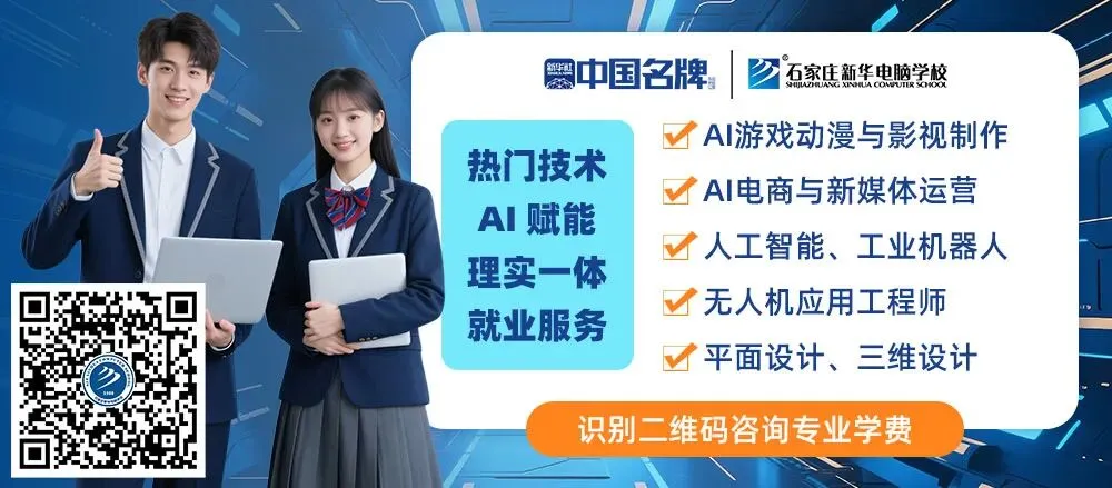 石家庄新华电脑学校紧跟行业趋势开设AI游戏动漫、无人机、美妆、智能制造、新媒体运营等热门专业,实战教学贯穿全程,老师带着边学理论边动手实操,小班授课兼顾每一位同学,专业设备配齐助力实训,手把手教你专业技术,掌握职业技能。