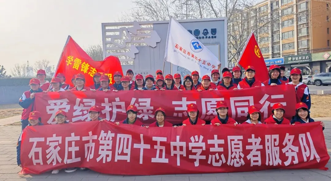 为深入贯彻劳动教育精神,增强学生环保意识与社会责任感,在第48个植树节来临之际,石家庄市第四十五中学团委组织学生志愿服务队,于2026年3月12日下午赴西兆通公园开展“爱绿护绿,志愿同行”植树节主题志愿服务活动,以实际行动践行生态文明理念,在实践中检验学生的“上进心”与“品行”。
