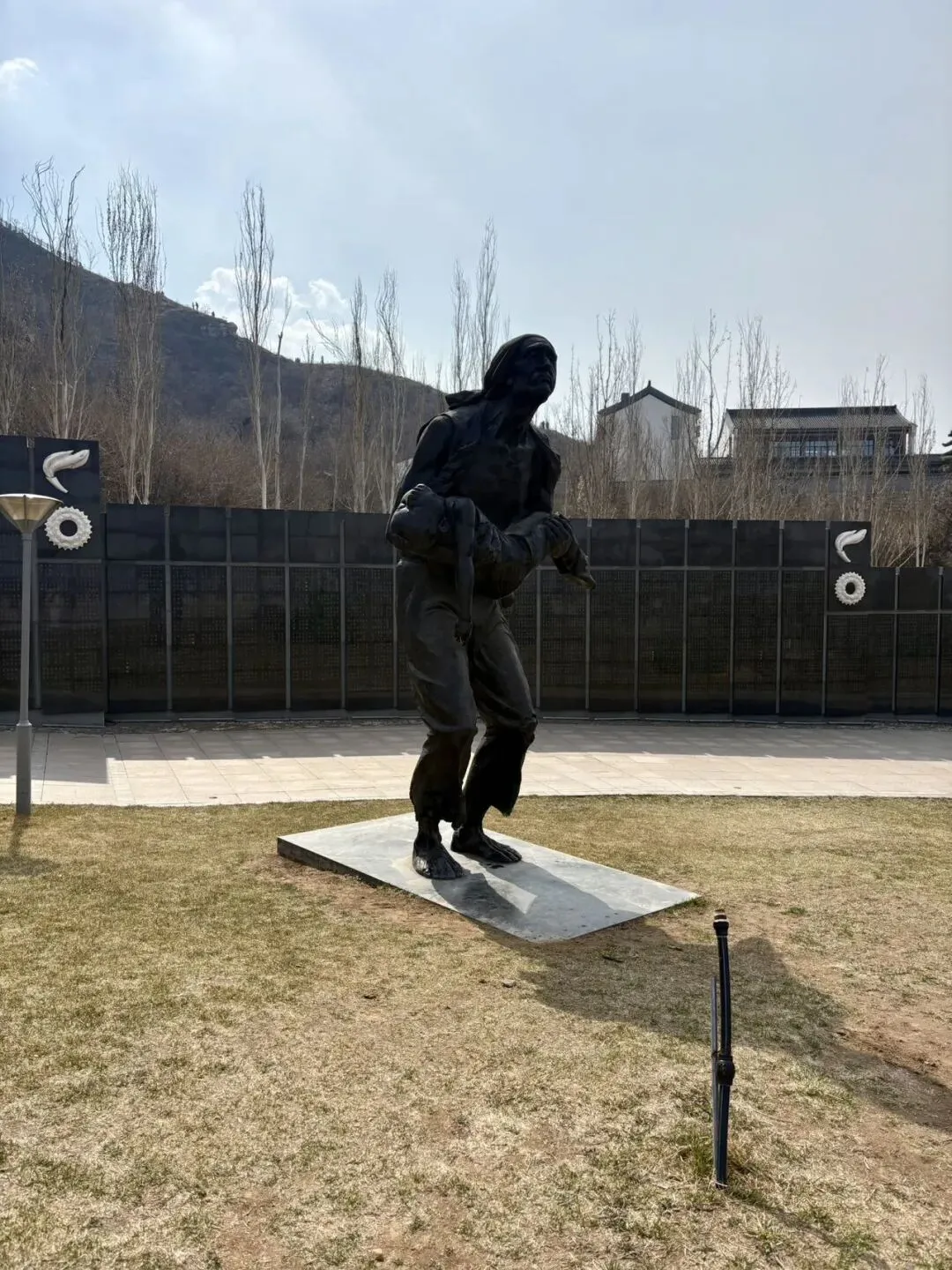 吃完饭,沿着上图台阶往上走。看到了下图的雕像,我们想着雕像的背后应该会有一个故事,一个在抗日时期的故事。