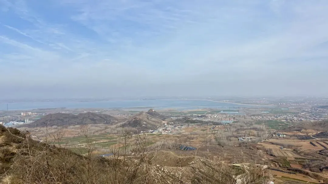 最高点处能看到黄壁庄水库,一边山,一边水。