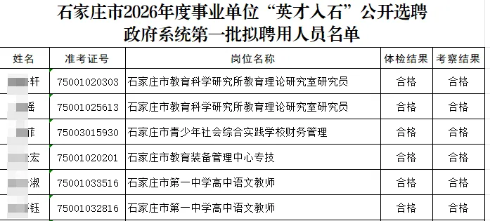 2026年河北石家庄市事业单位“英才入石”公开选聘政府系统(含教师岗)第一批拟聘用人员公示