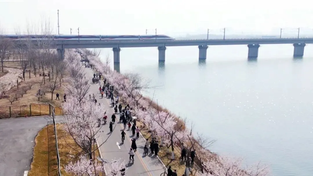 走进滹沱河艺术生态岛,沿着南环路从国际赛车公园到高铁桥下大约总长1.5公里的道路两侧种满了桃树。现在正是桃花盛开的时节,千株桃花迎着春风次第开放,粉白的花瓣层层叠叠,在暖阳下勾勒出浪漫的春日图景。众多市民从四面八方来到这里,纷纷被这片美丽壮观的花海吸引,大家扶老携幼,赏花拍照,记录这份春日美好。