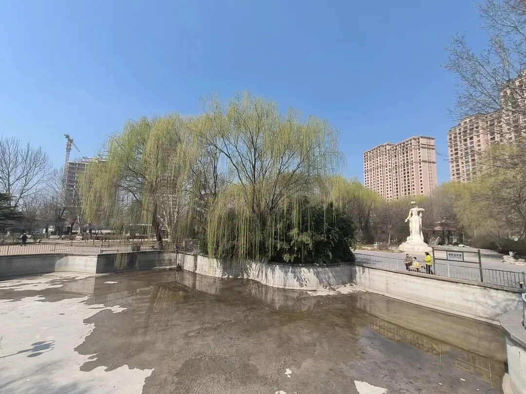 感觉着“二月春风”不仅仅“似剪刀”,而是“剪刀高手”,把柳叶裁的又细又长还又均匀,可惜的是这里的池中没有水,使得整个公园缺少了点灵气和活力。