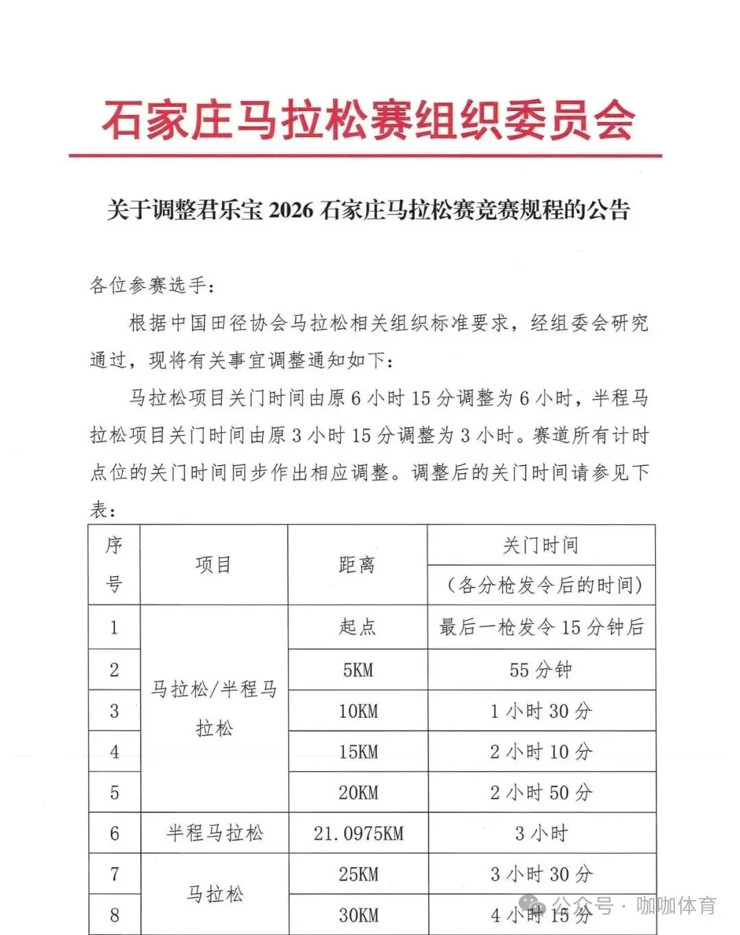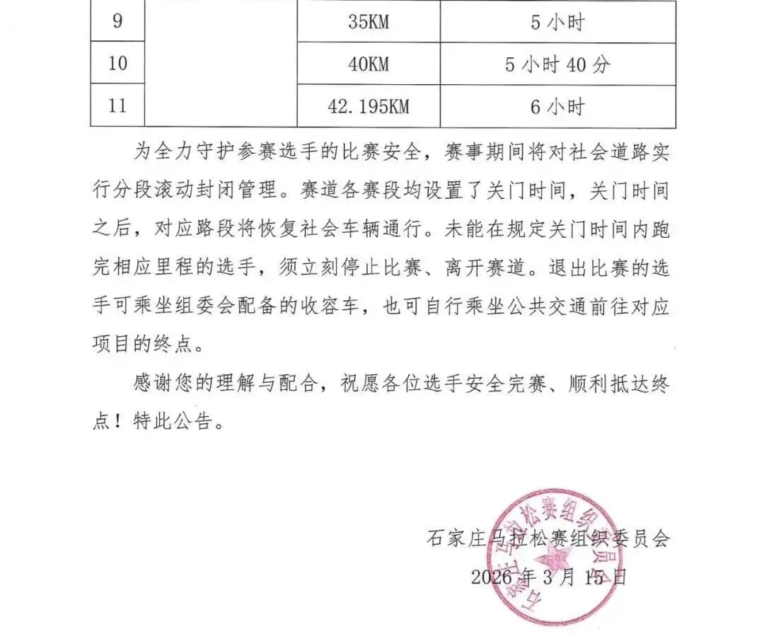 >【京津冀赛事】君乐宝2026石家庄马拉松关门时间调整