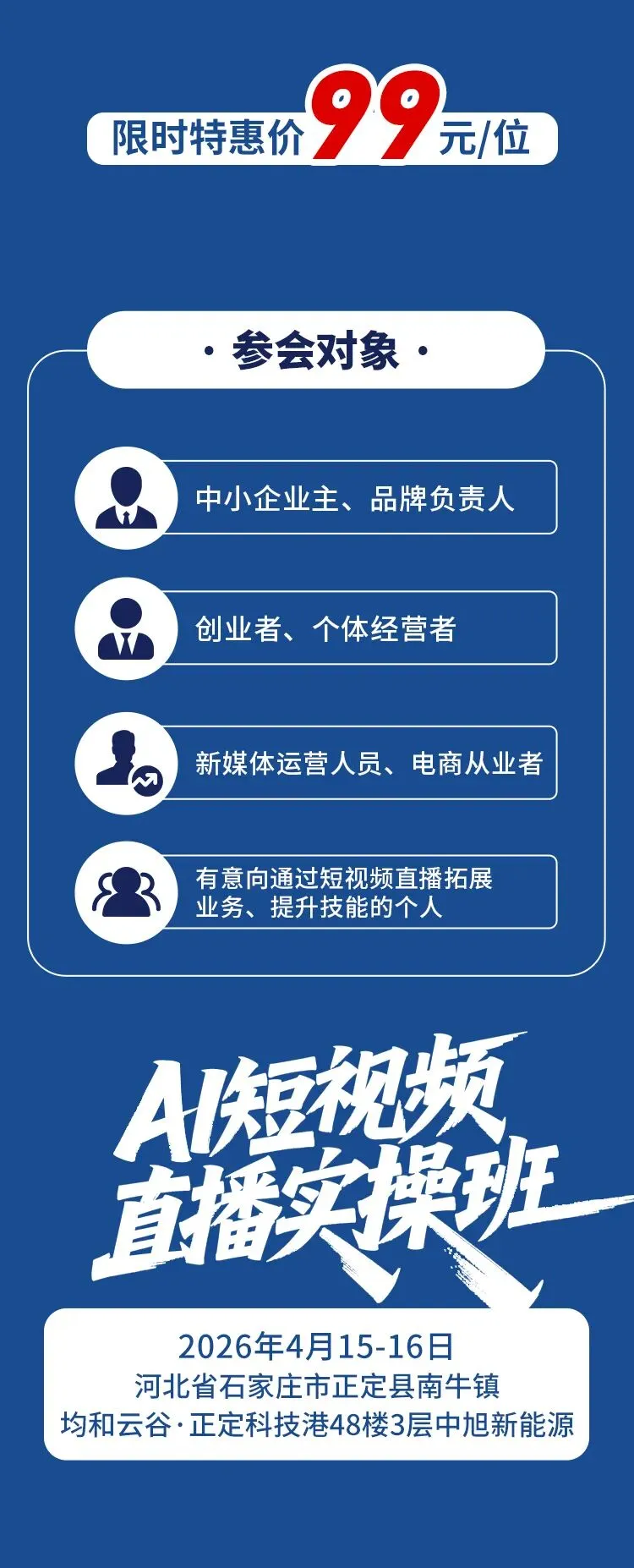 4月15-16日 | 石家庄《AI短视频直播实操班》帮助企业引爆业绩增长,获取短视频流量变现.
