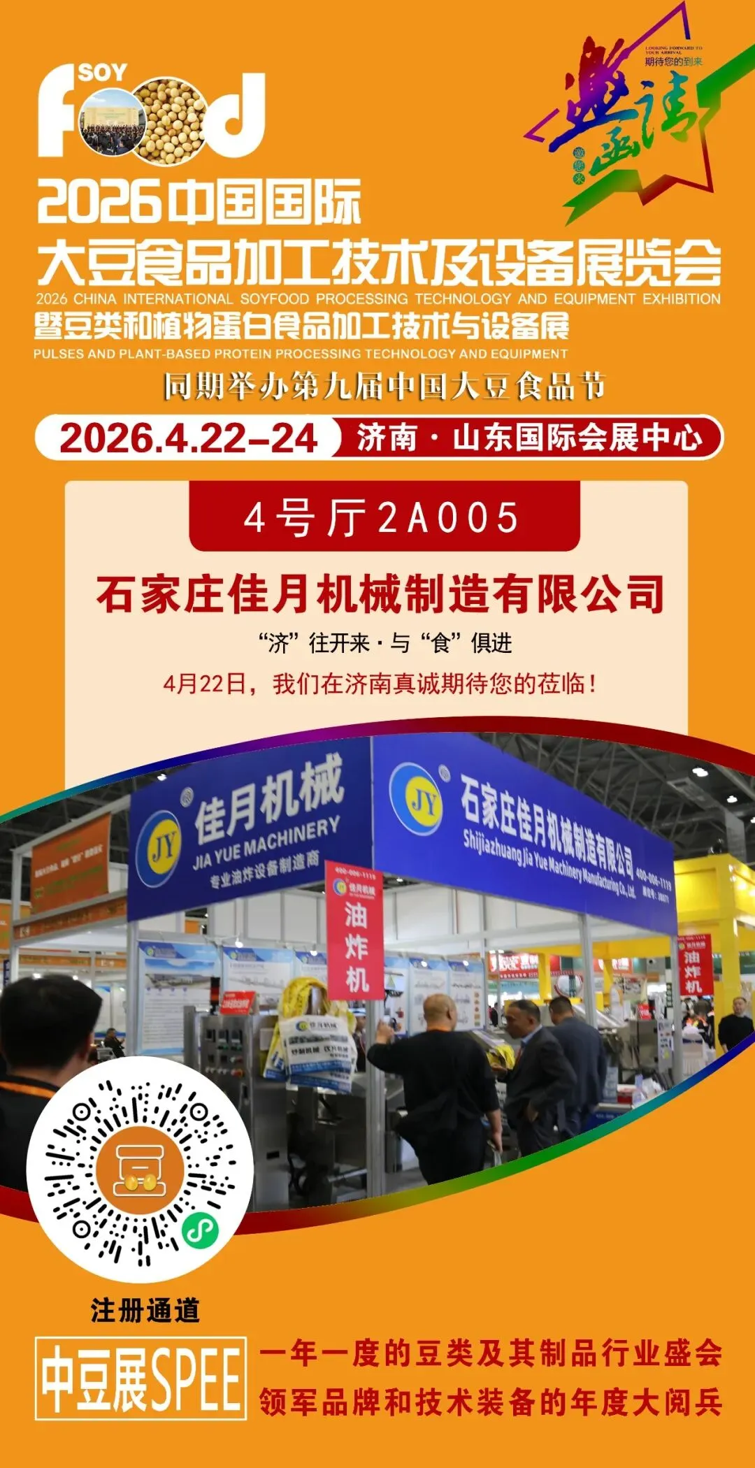 “济”往开来,与“食”俱进。2026年4月22日,中豆展SPEE将继续创新与突破,我们诚邀您共同见证此次行业年度盛会。共论新机遇,共赢新未来!