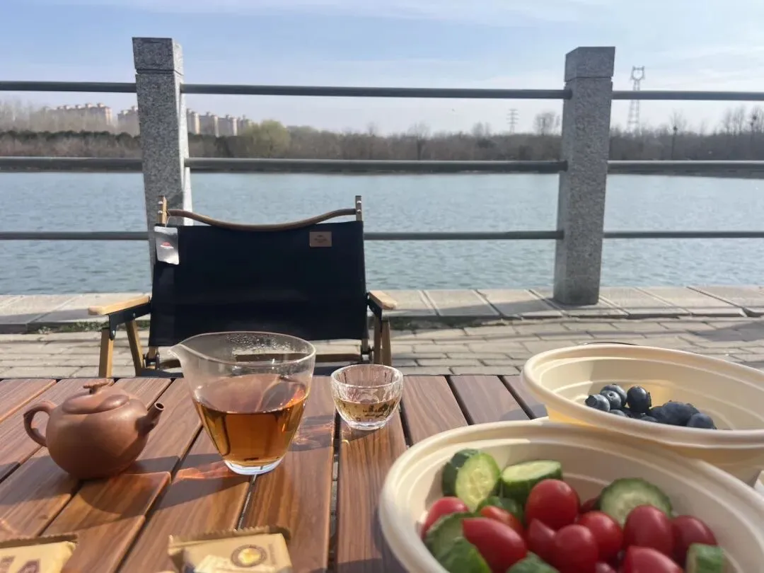 味道👅说不上太好,也不差,对于长期在西南边生活的孩子来说,这个面已经很劲道了,很不错了。朋友说今天难得天气好,带了户外桌椅去河边坐一下,晒晒,喝喝茶。