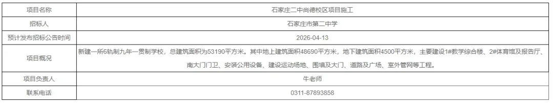 近日,石家庄公共资源交易网发布石家庄二中尚德校区项目施工招标计划。
