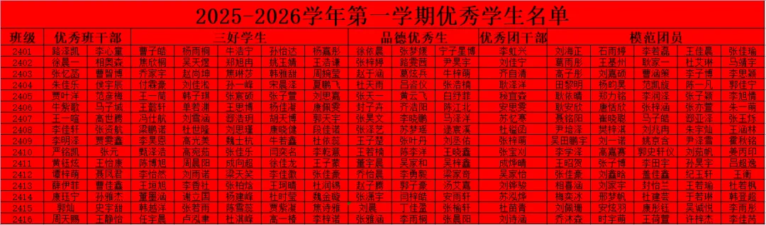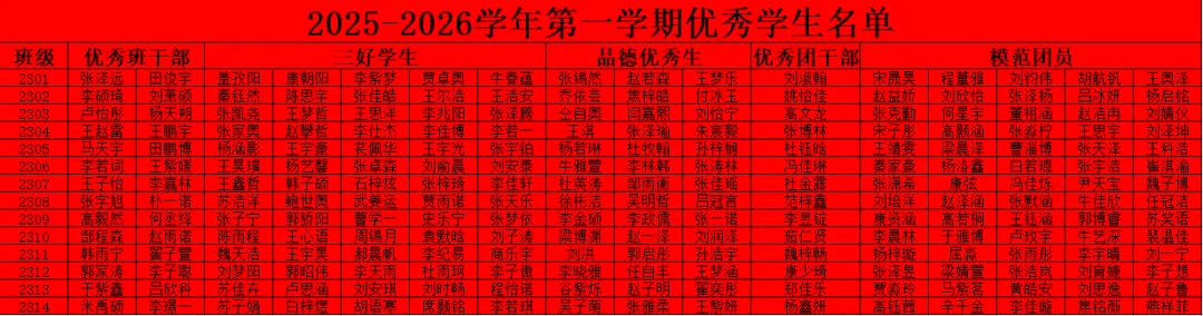 校园里的每一份努力都值得被看见,每一个榜样都能照亮前行的方向。在 2025-2026 学年第一学期的校园时光里,石家庄实验中学的学子们以勤勉浇灌梦想,以笃行诠释担当,在学习成长、品德修养、服务集体的道路上奋勇争先,涌现出一大批优秀代表。为表彰先进、树立榜样,学校特对上学期荣获优秀班干部、三好学生、品德优秀生、优秀团干部、模范团员等荣誉的同学予以隆重表彰!