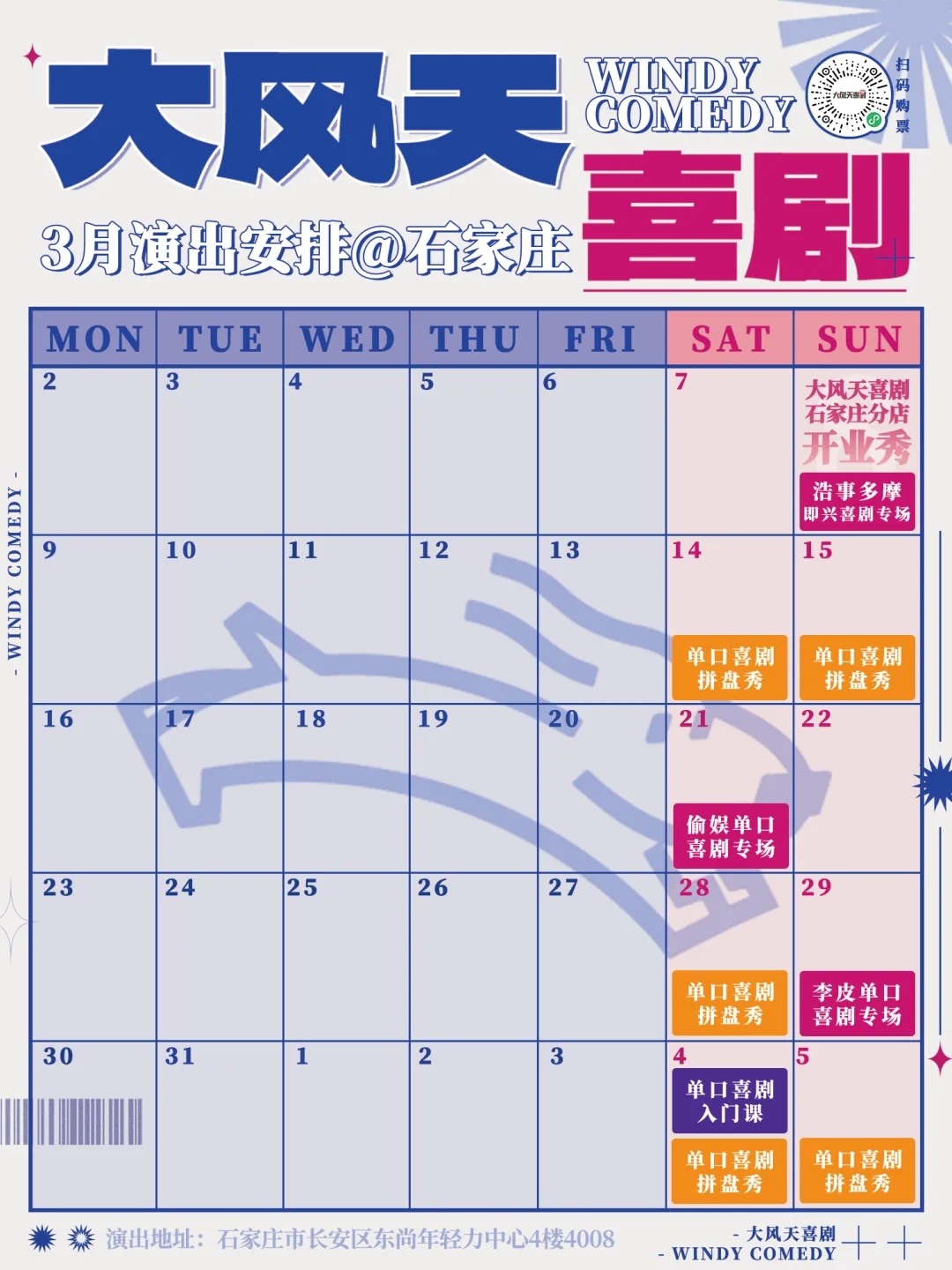 这个三月,大风天将开启「春风石里」开业演出季,3月演出已全部上架,大家熟悉的大风天老面孔,也将很快陆续与石家庄的观众们见面,敬请期待!