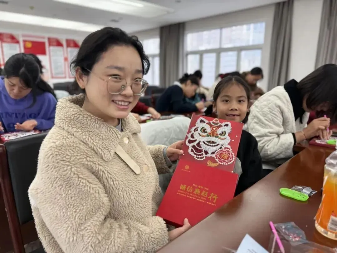 诚信宣讲环节结束后,现场随即开启“帮小西”诚信主题非遗手工课堂。活动特邀非遗传承人现场指导居民群众制作“醒狮珍珠画”,将“诚信”二字巧妙融入作品创作。