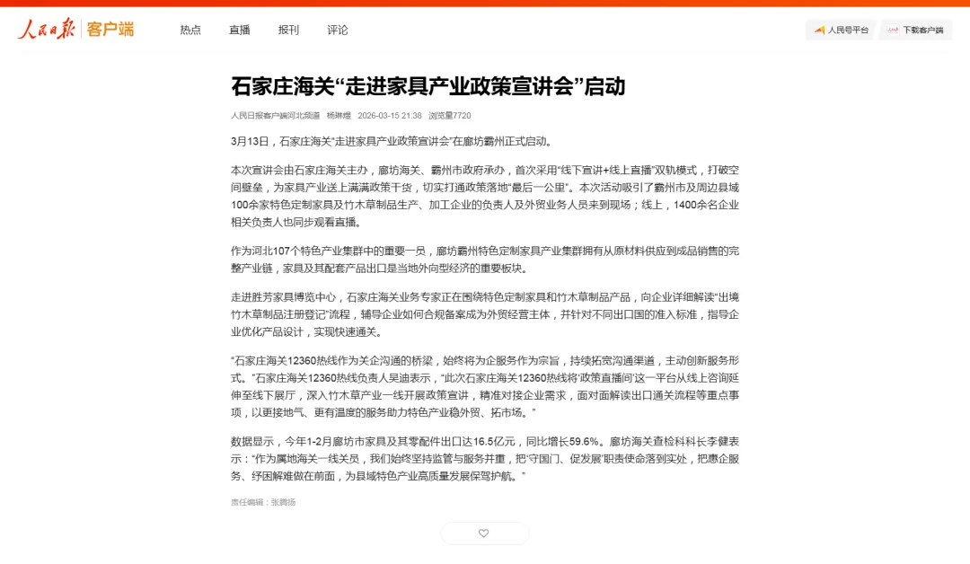 石家庄海关“走进家具产业政策宣讲会”启动