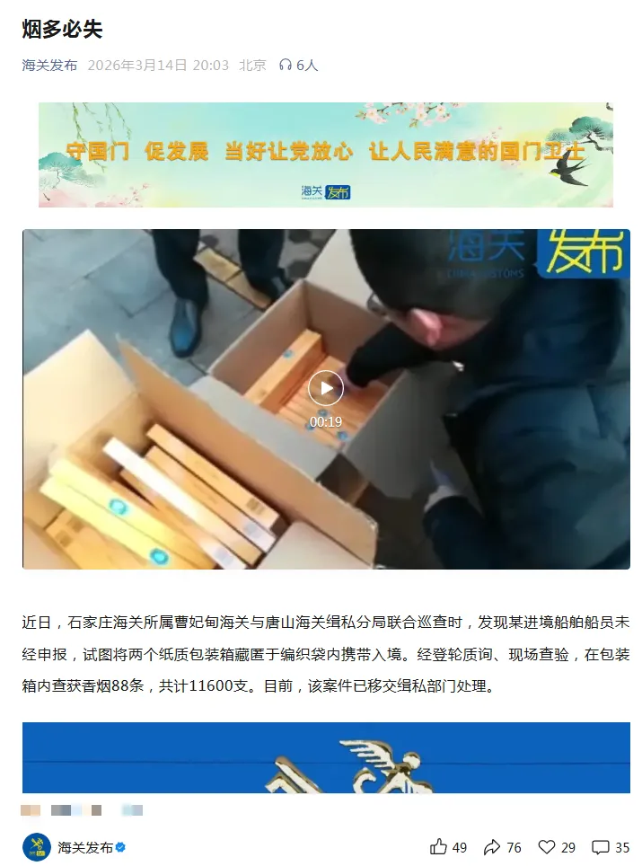 “海关发布”微博