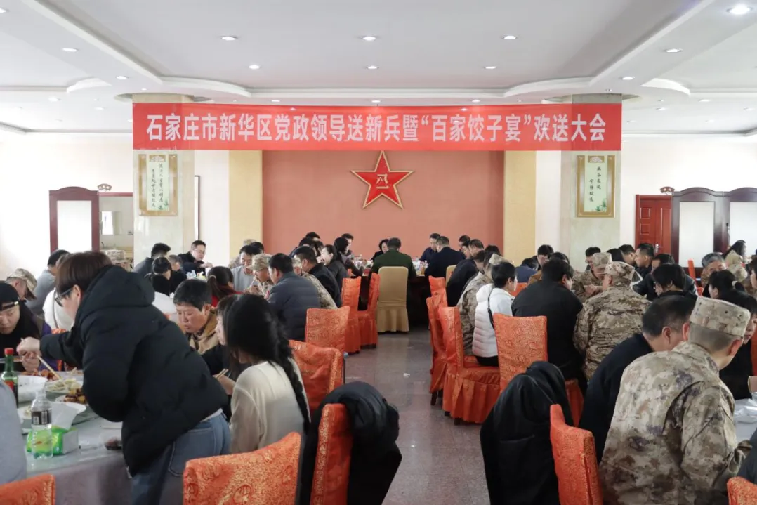 新华区举行送新兵暨“百家饺子宴”系列活动。军地有关负责同志共同为新兵代表颁发入伍寄语,向光荣入伍、奉献青春的新兵同志表示热烈祝贺,向深明大义、情系国防的家长们致以崇高敬意,并对新兵提出了希望。