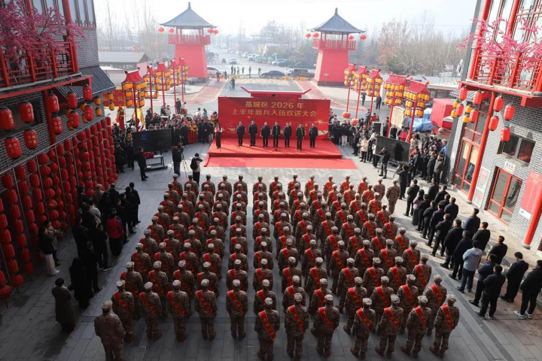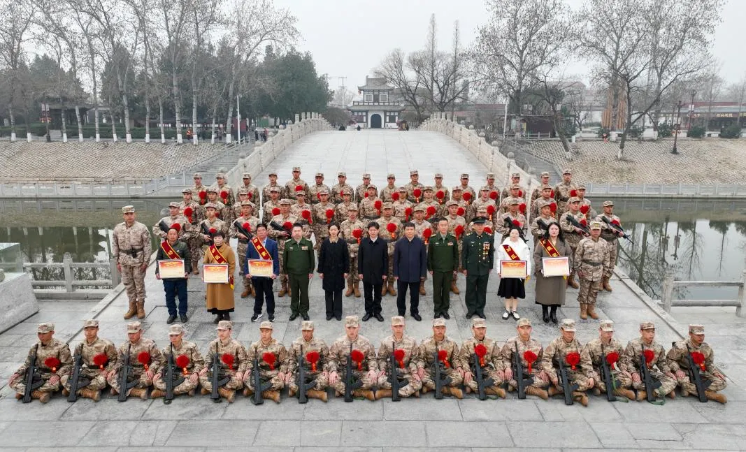 赵县在赵州桥景区举行了“千年赵州桥·万众筑长城”——2026年上半年新兵欢送暨集中送喜报大会。县领导为军队功勋荣誉表彰官兵亲属代表送上三等功立功喜报,为新兵佩戴光荣花。全体新兵精神抖擞、列队整齐,迈着铿锵有力的步伐依次走过“出征门”,以昂扬姿态奔赴军营、开启崭新的军旅生涯。