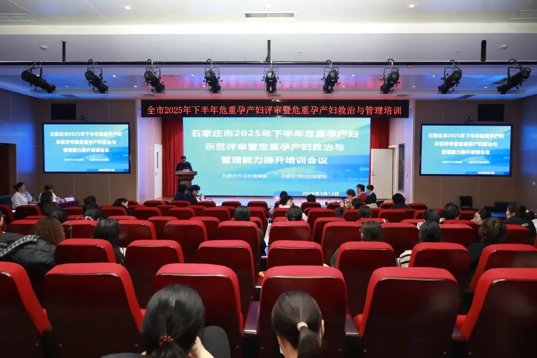 2026年3月12日,石家庄市2025年下半年危重孕产妇示范评审暨危重孕产妇救治与管理能力提升培训会议在石家庄市妇幼保健院六楼多功能报告厅顺利召开。