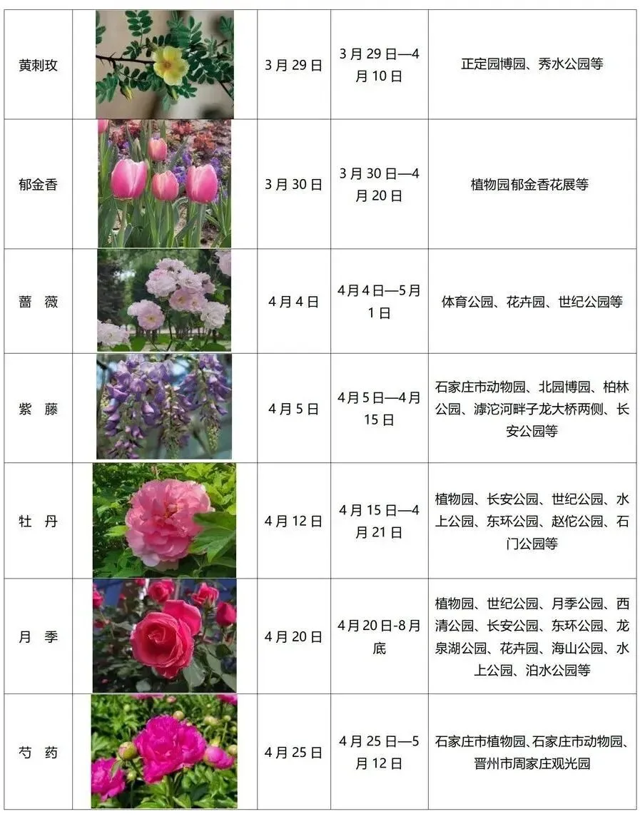 2026年石家庄春季赏花时序表