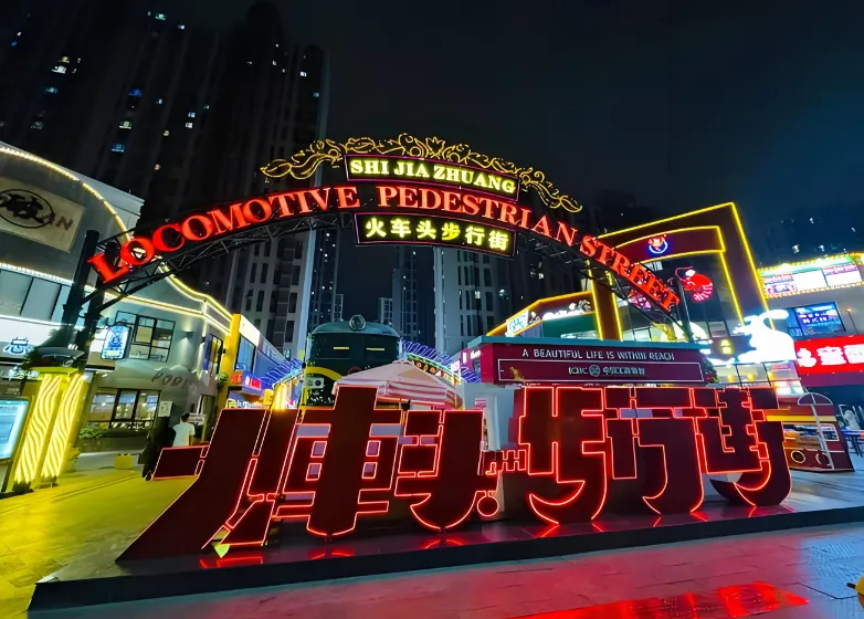 回到市区,一定要去裕华区的这个步行街。这里保留了复古的绿皮火车头,两边是各种创意小店和美食摊。别觉得它俗,晚上那种热闹的烟火气特别治愈。在这里买一份刚出锅的炸鸡架,边走边吃,这才是石家庄的正确打开方式。