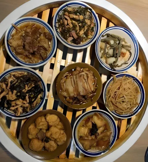 这可是非遗美食,相传是赵子龙创的,用来犒赏三军。八个粗瓷大碗一上桌,霸气侧漏。里面有扣肉、丸子、酥肉等,都是蒸出来的,肥而不腻,入口即化。在正定古城的老饭店里吃,还能看民俗表演。