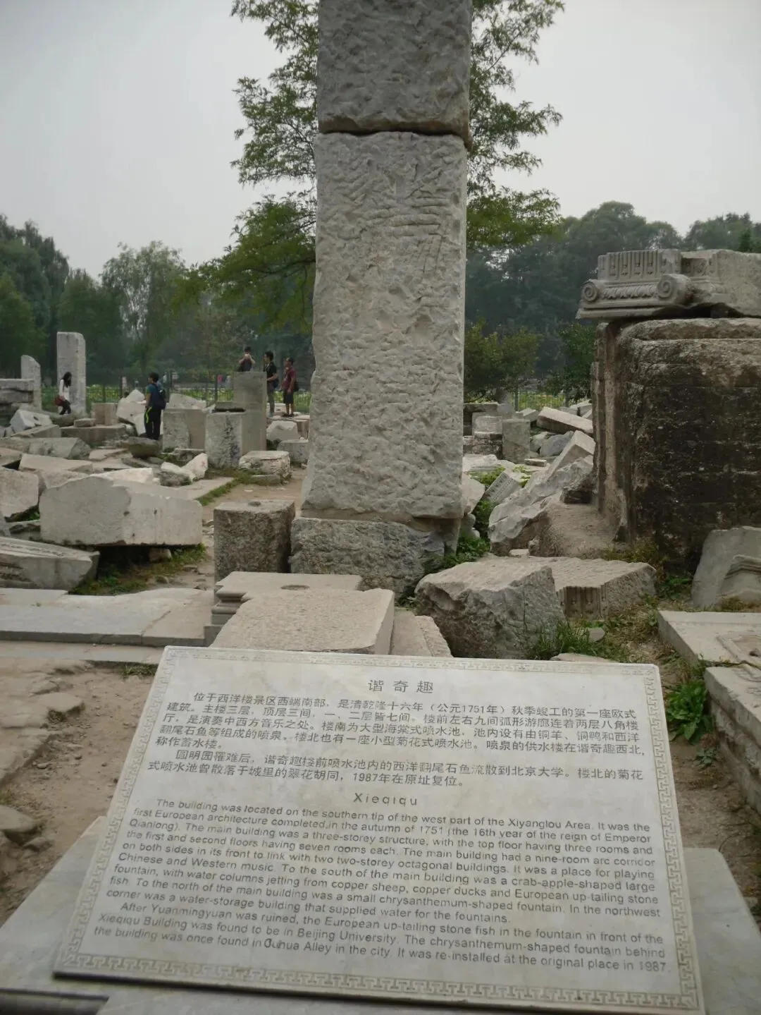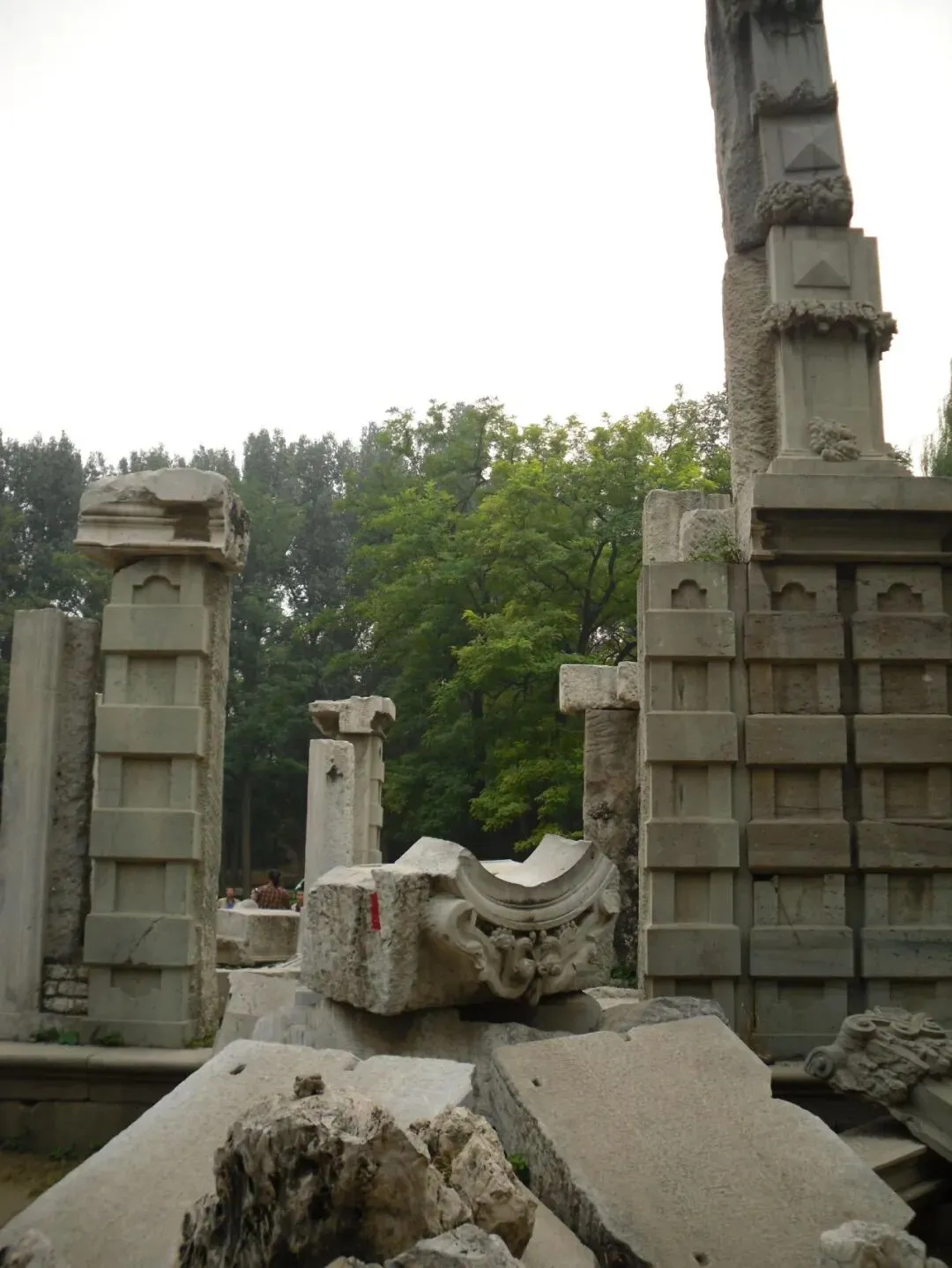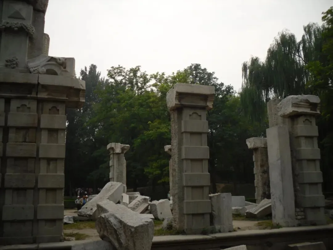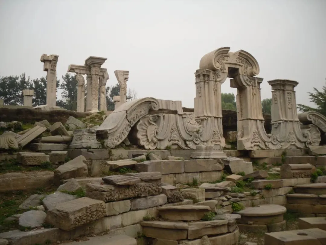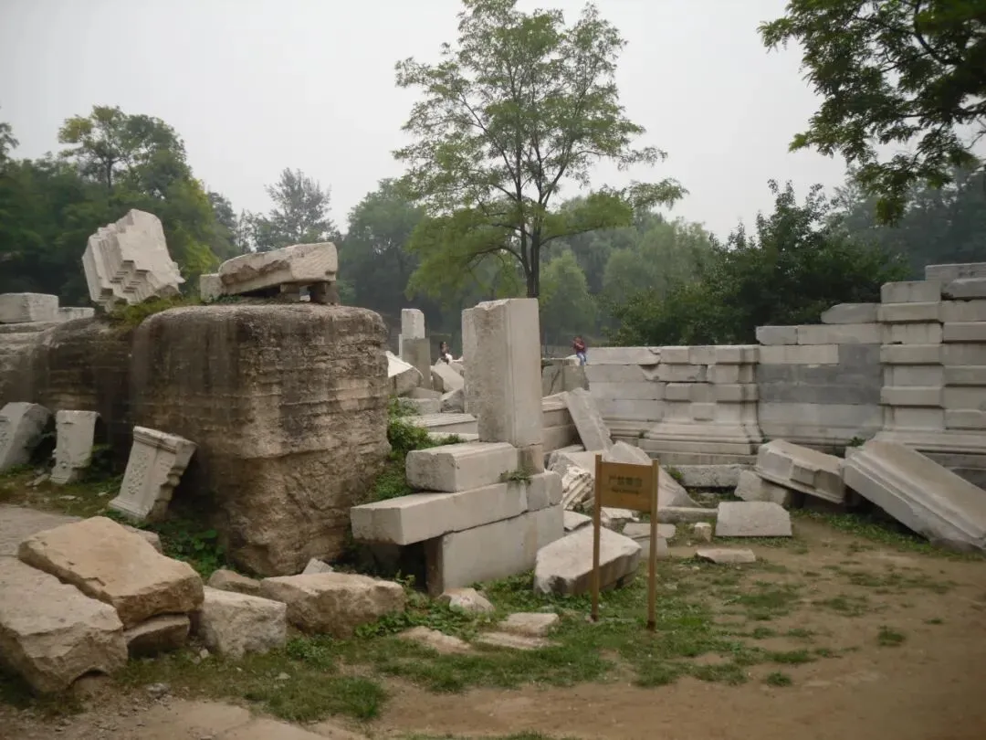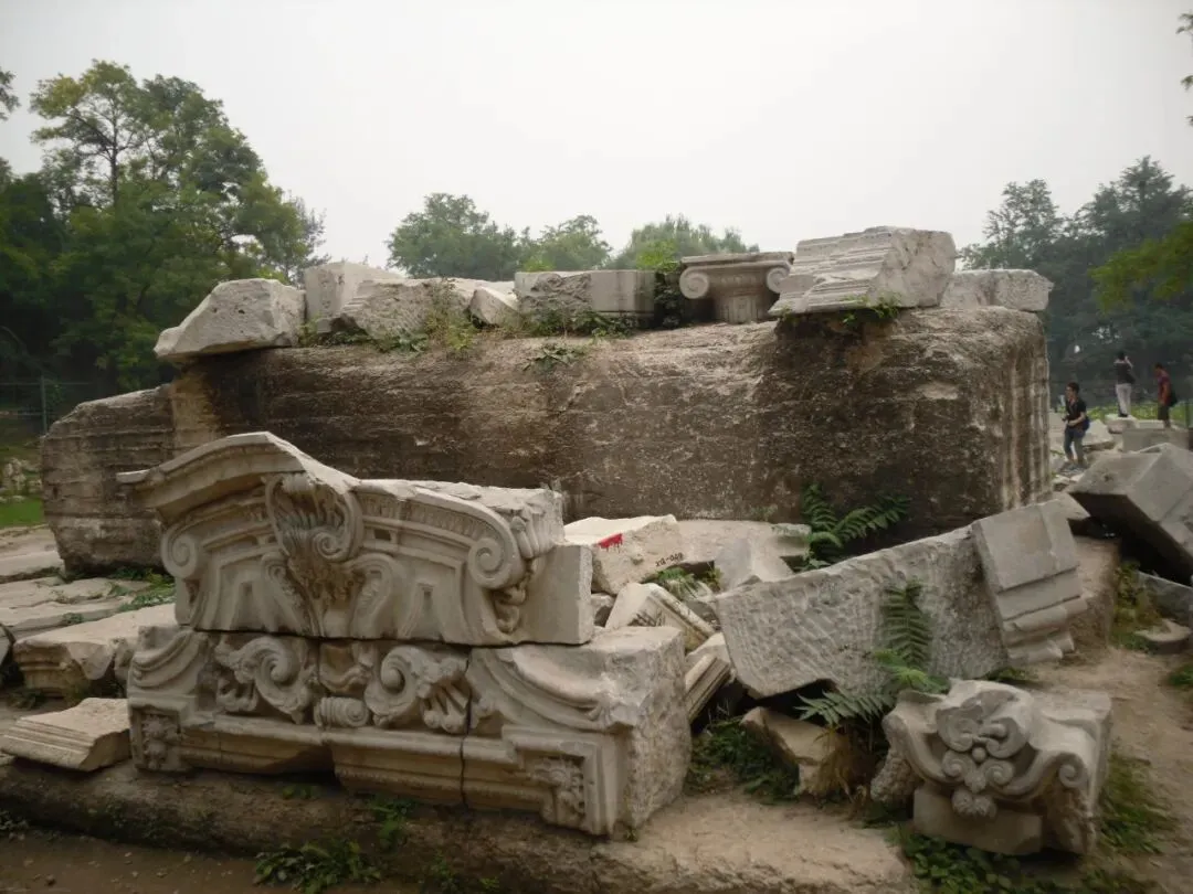 如今这些精美的汉白玉雕刻残垣断壁,是1860年英法联军焚毁圆明园留下的遗迹。