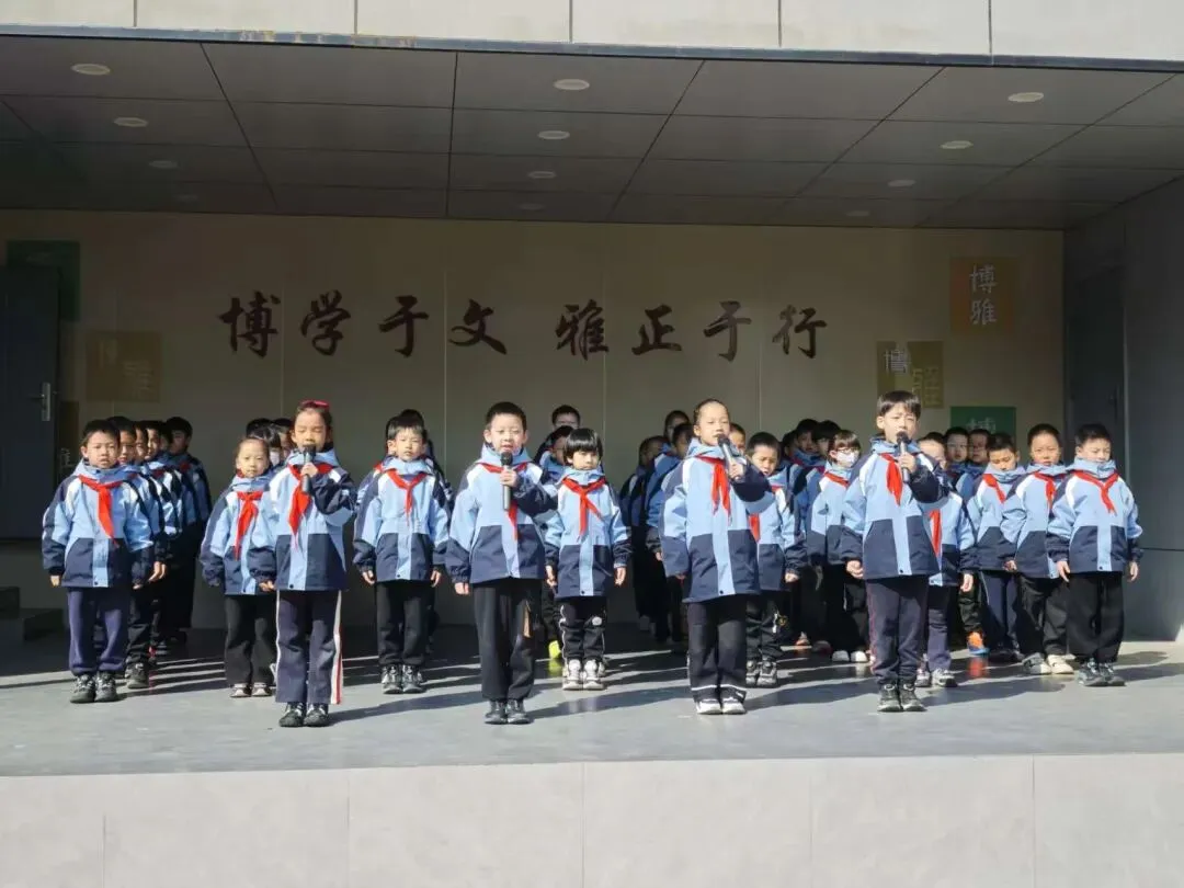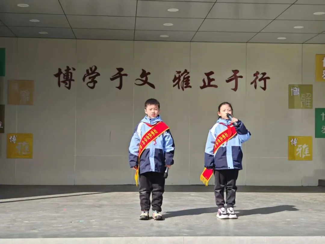 他们并肩而立,护卫国旗;他们心怀光芒,逐光而行。愿这份光,照亮他们前行的路,也温暖身边的每一个人。在庄严的升旗仪式后,二五中队的全体队员们用童真的语言、生动的朗诵读懂了水的珍贵,更用行动诠释了“珍惜”二字的分量。他们化身节水小卫士,喊出响亮的“能量口诀”——“随手关,一水用,滴滴贵,勇敢说!”这不仅是口号,更是承诺;不仅是表演,更是行动。