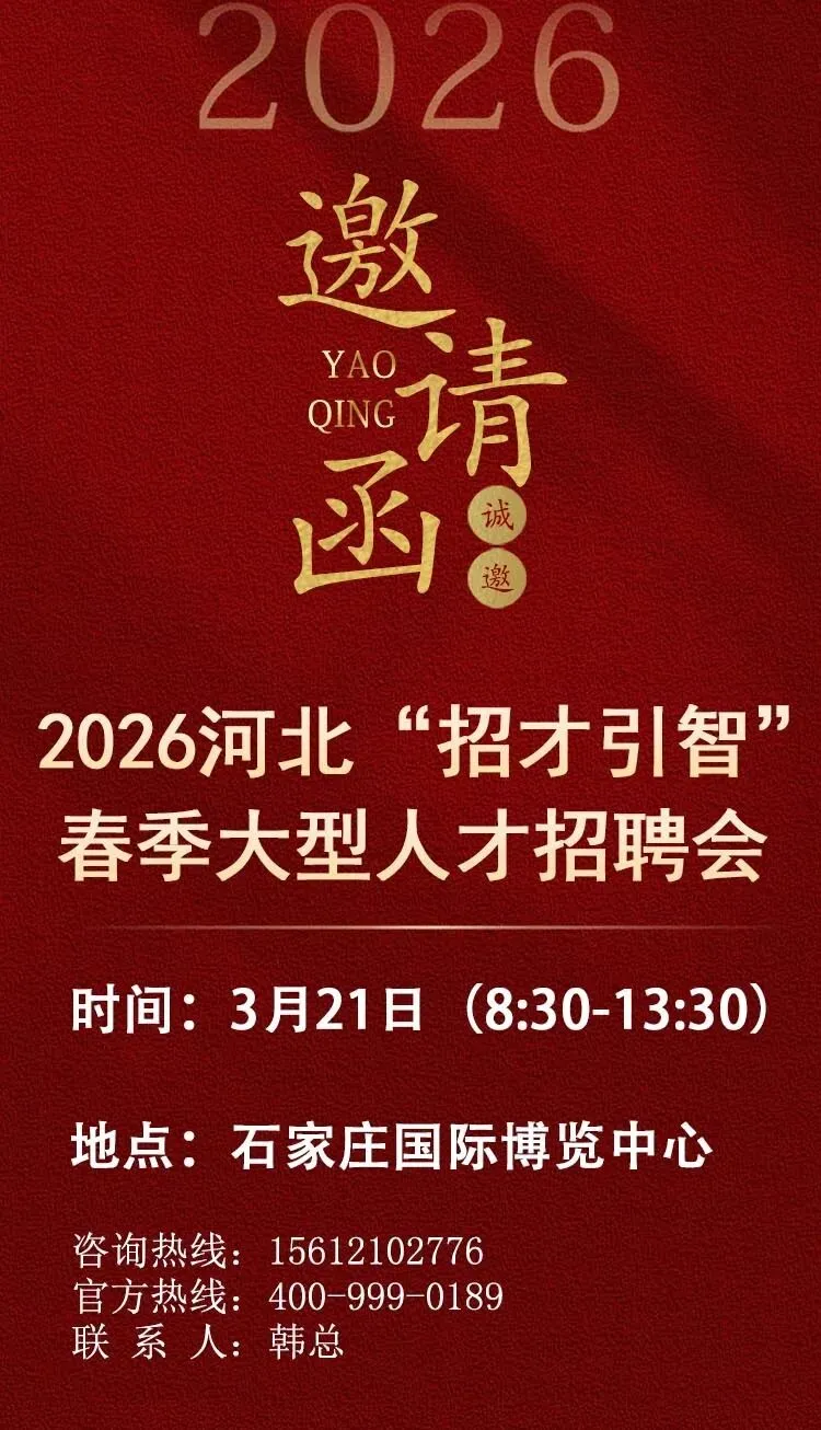 为深化发展型城市建设,河北省石家庄加大优秀人才招引聚集力度,为社会高、中、低端各类人才及应往届高校毕业生提供良好的就业和创业机会,将于2026年3月21日在石家庄国际博览中心组织举办2026“招才引智”河北省春季大型综合人才招聘会。