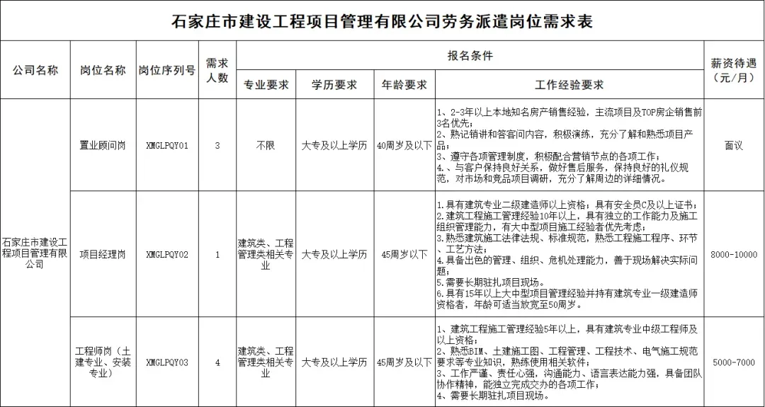 石家庄市建设工程项目管理有限公司劳务派遣制人员招聘8人公告