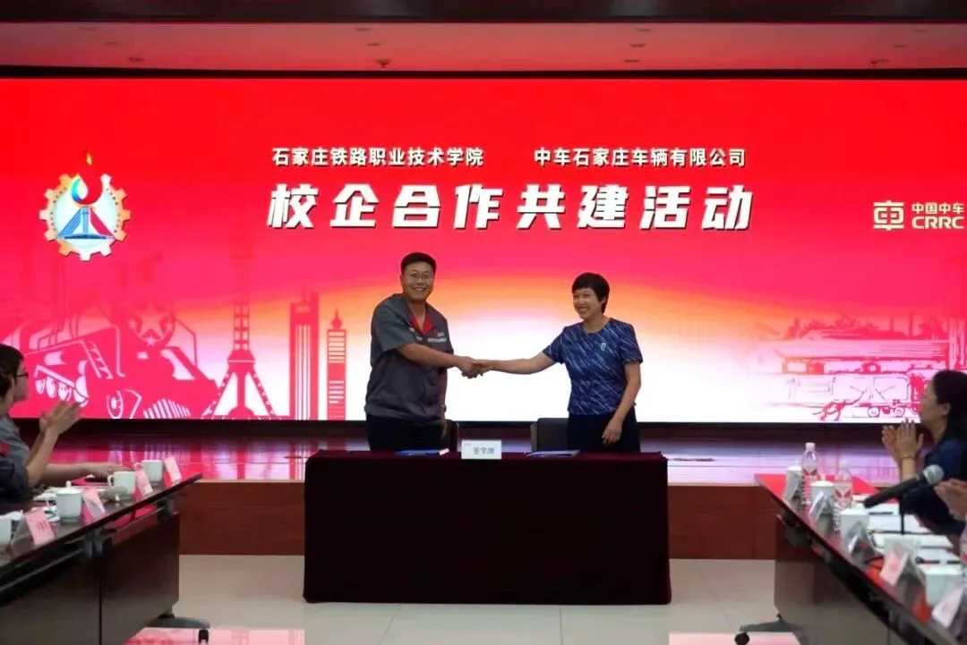 2025年6月25日,石家庄铁路职业技术学院与中车石家庄车辆有限公司开展校企合作共建活动,并正式签署校企合作框架协议和“大思政课”实践教学基地协议。双方将以“产教融合、思政铸魂”为核心,构建“党建引领、资源共享、双向赋能”的协同育人体系。