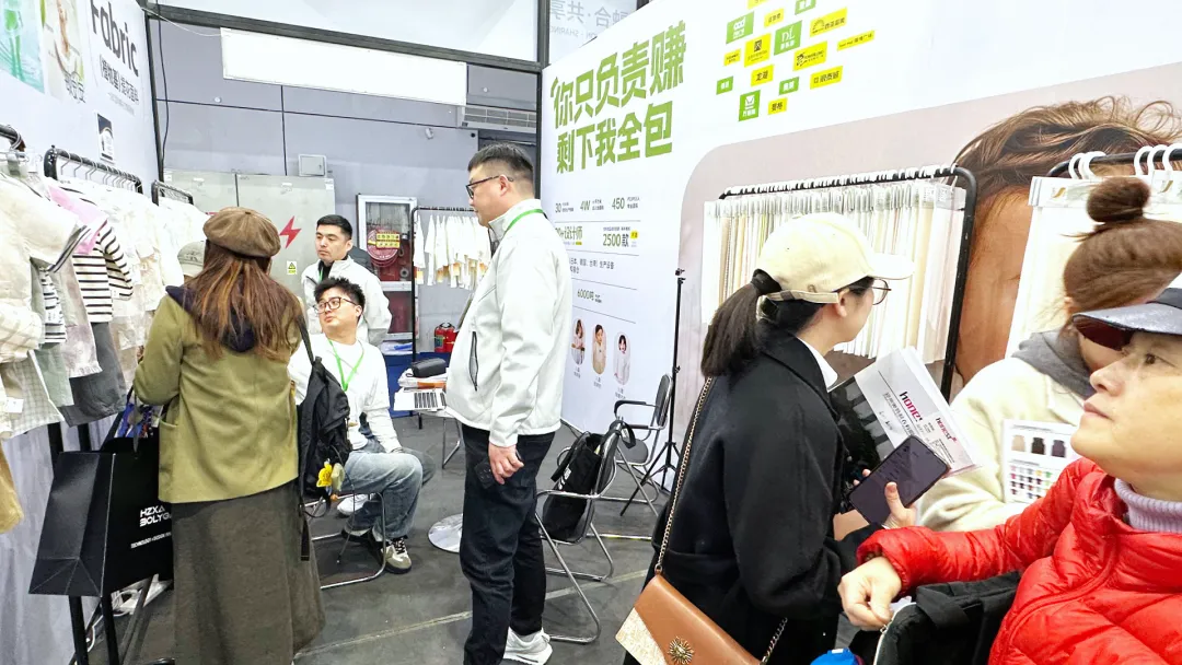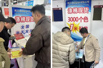 在河北信源纺织有限公司展位上,新老客户不时光临。这家主要生产销售服装口袋布、工装、职业装等面料的公司,在浙江柯桥专设成品仓库,现货有3000多个颜色,一米起售,可做到当天发货,直达全国各地客户工厂。通过这次参展又有了新订单。