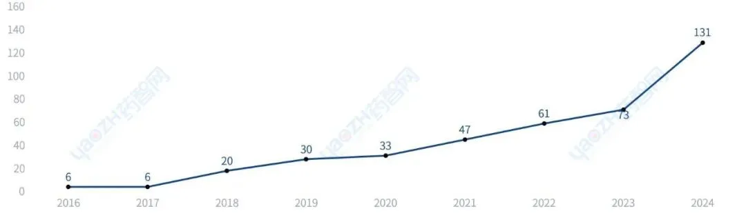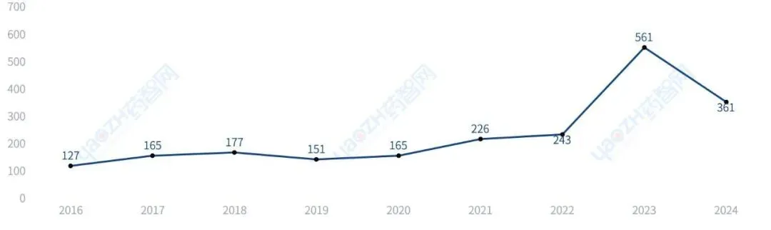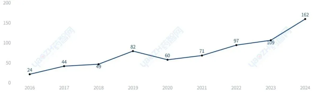 从药品批准上市看,2016年至2024年,石家庄市的药品批准上市总数为407个(以品种计)。在全国所有城市中,石家庄市排第5名。