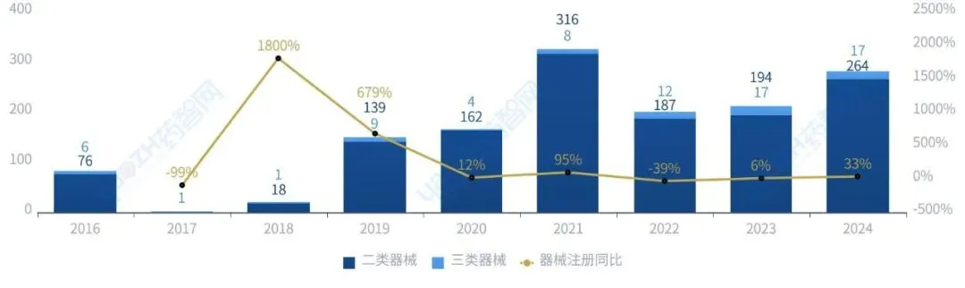 2024年,石家庄市医疗器械产品注册数量为281件,与去年同期相比增长33.18%;产品备案数量为306件,与去年同期相比下降24.44%。