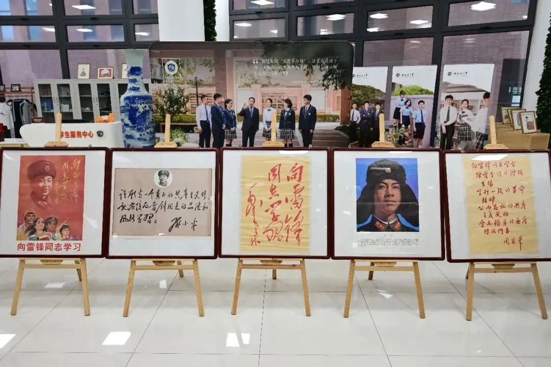 由著名红色文化收藏家、评论家王律先生提供。展馆内,师生们边走边看,王律讲述了雷锋宣传画收藏背后的故事。