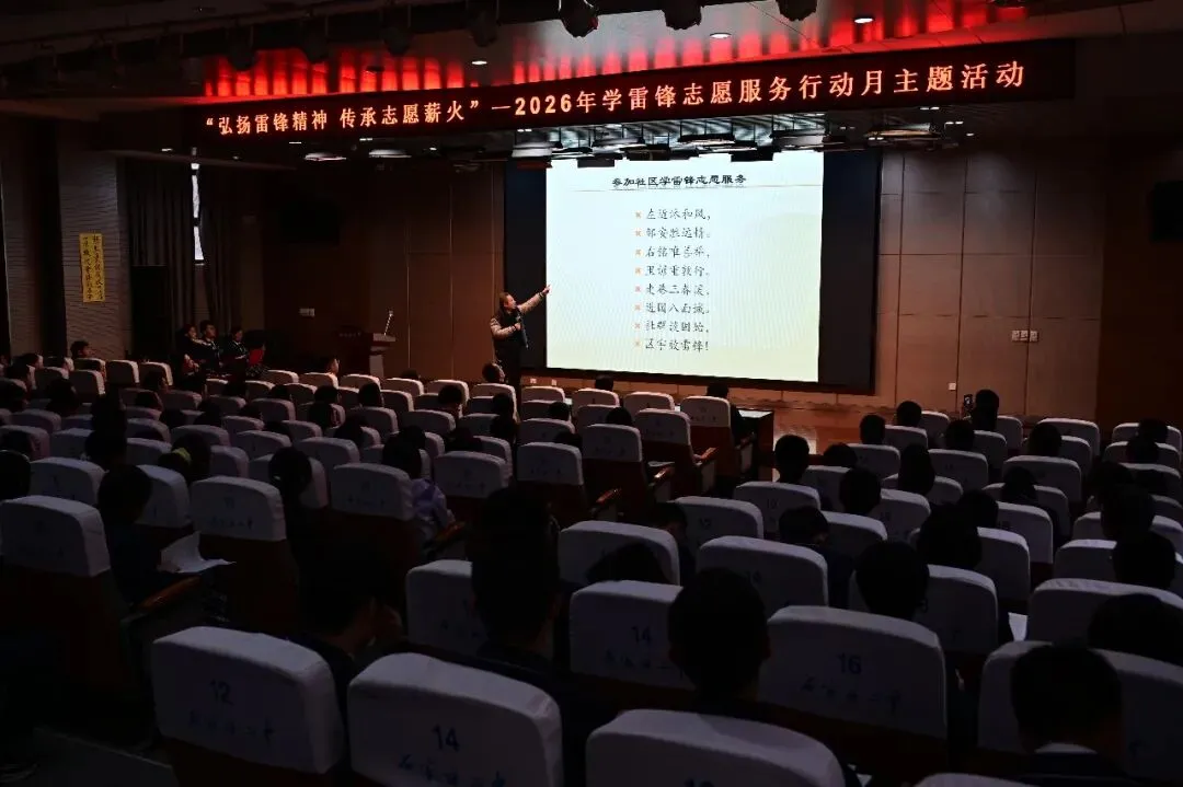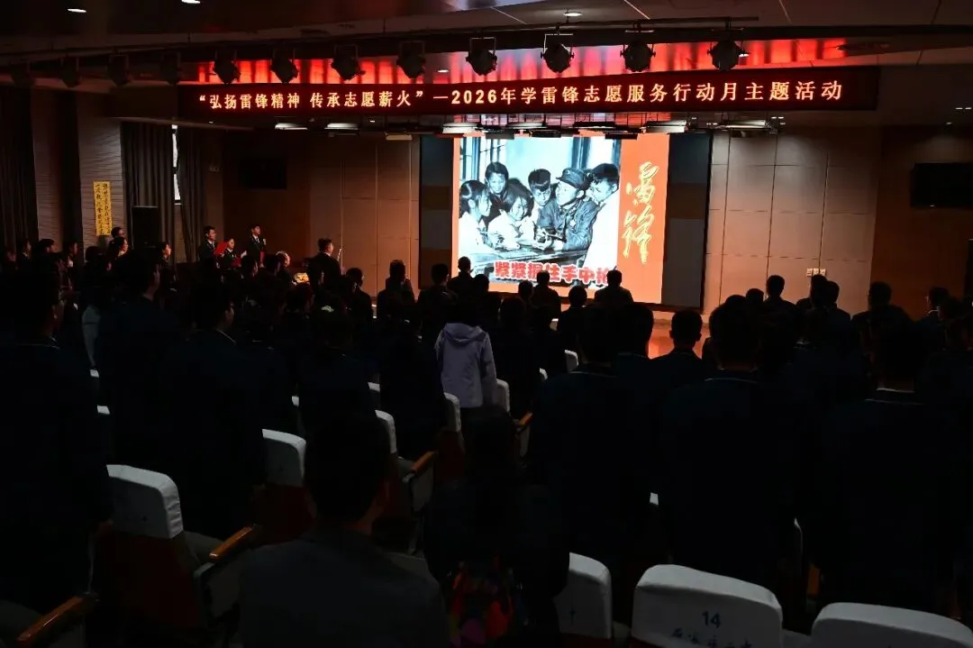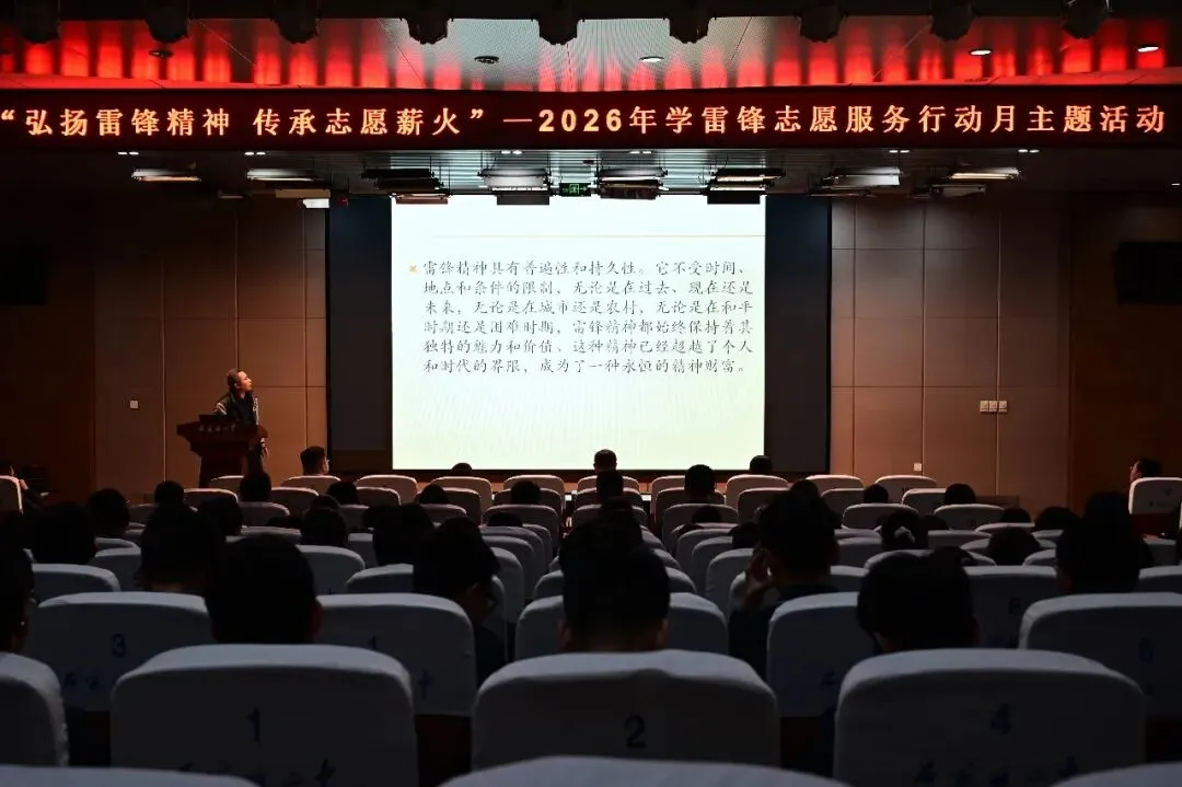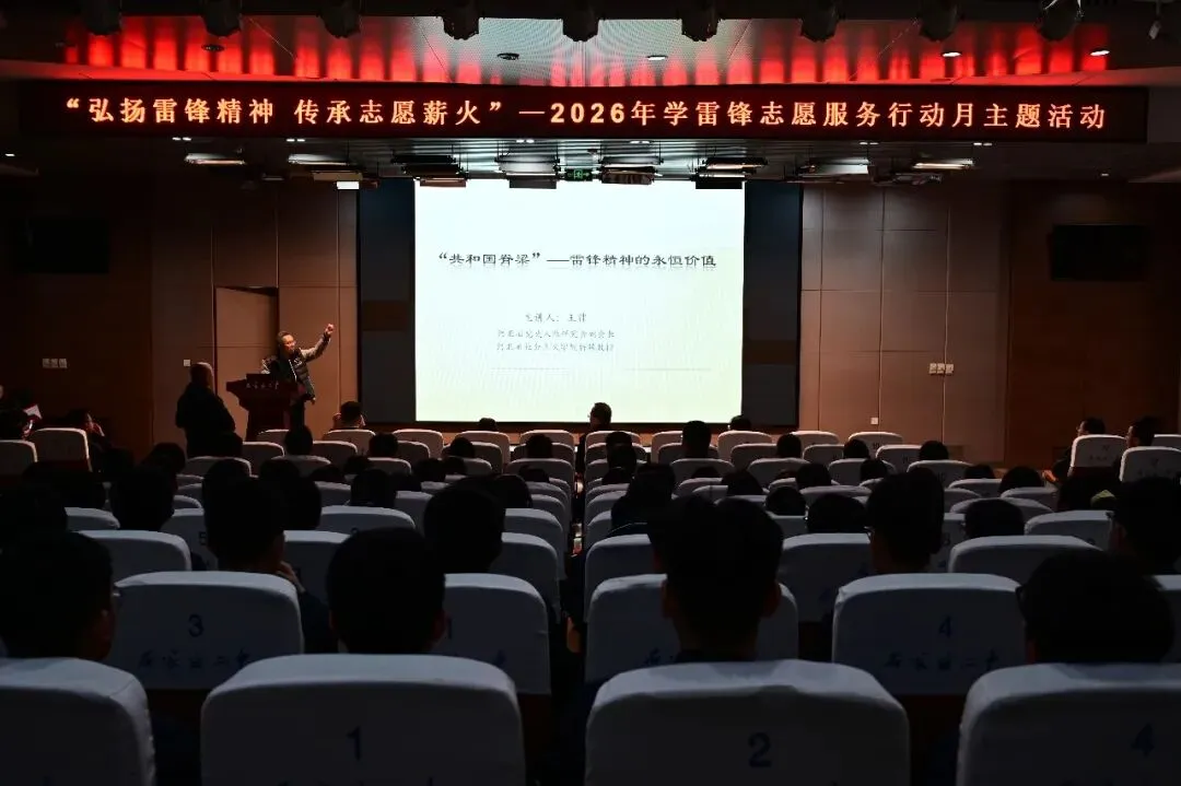在学校报告厅,主讲人王律开展了以“共和国脊梁——雷锋精神的永恒价值”为主题的报告,将雷锋精神浸润到莘莘学子的心中。