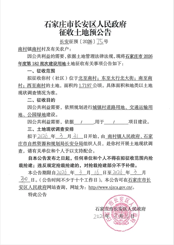 >石家庄征收土地公告!