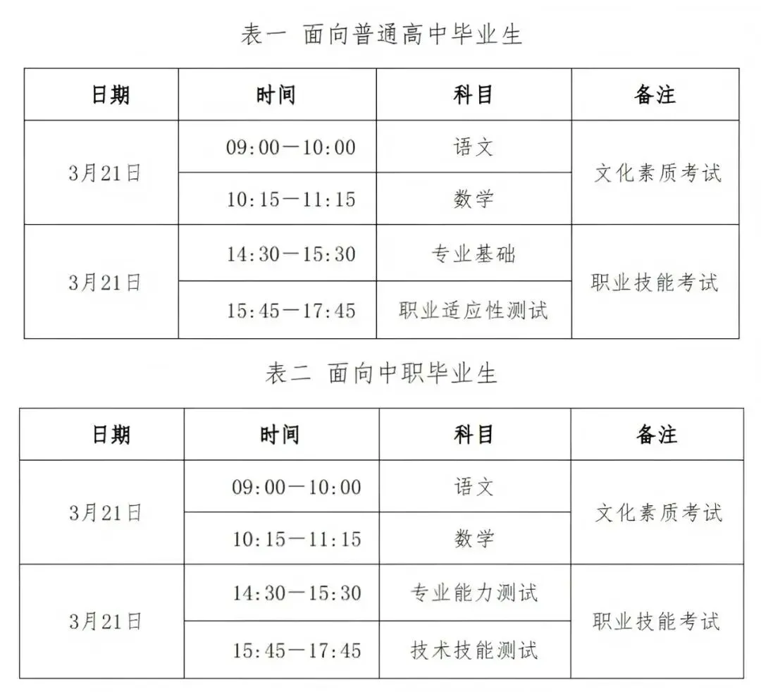 (2)报考面向中职学校毕业生计划考生:总分相同时,按职业技能分数择优录取;若按以上方法仍分数相同,则按语文、数学、专业能力测试、技术技能测试顺序比较单科成绩,择优录取。