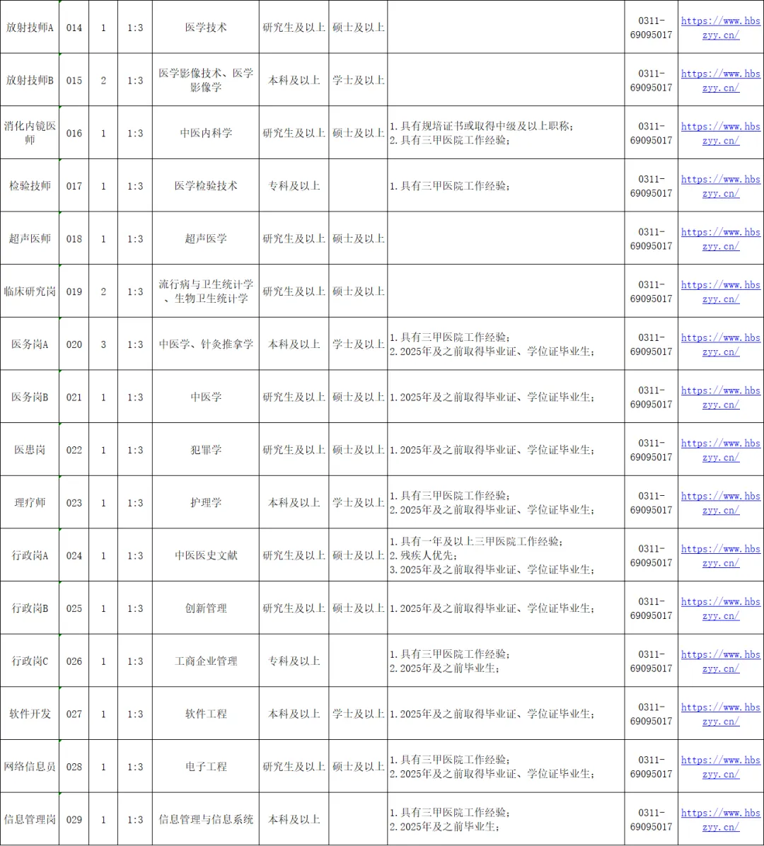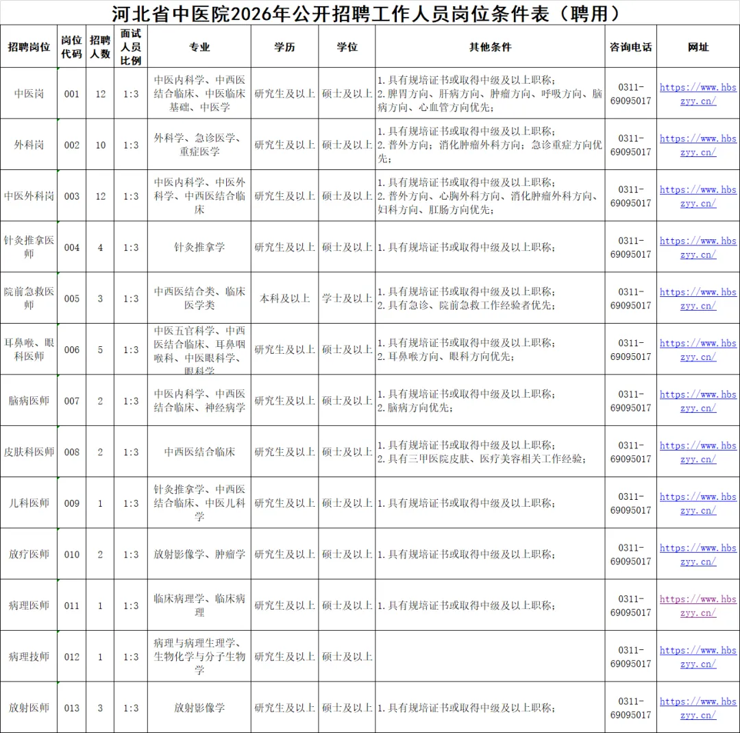 关注【石家庄本地宝】公众号,私信回复【中医院】,即可获取招聘公告详情、岗位表/申请表/报名信息汇总表下载入口、联系方式等